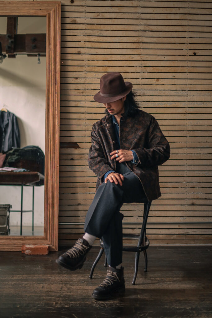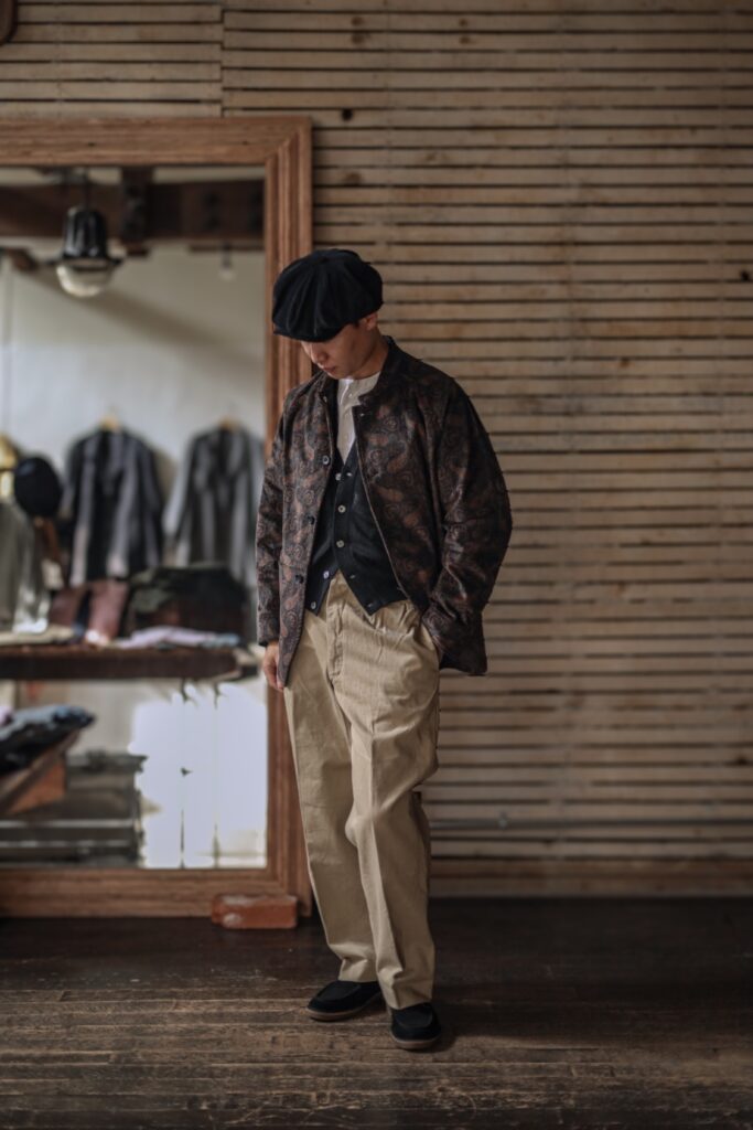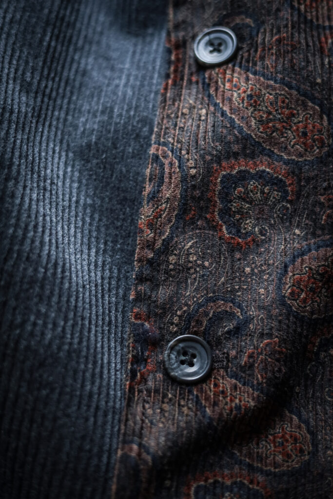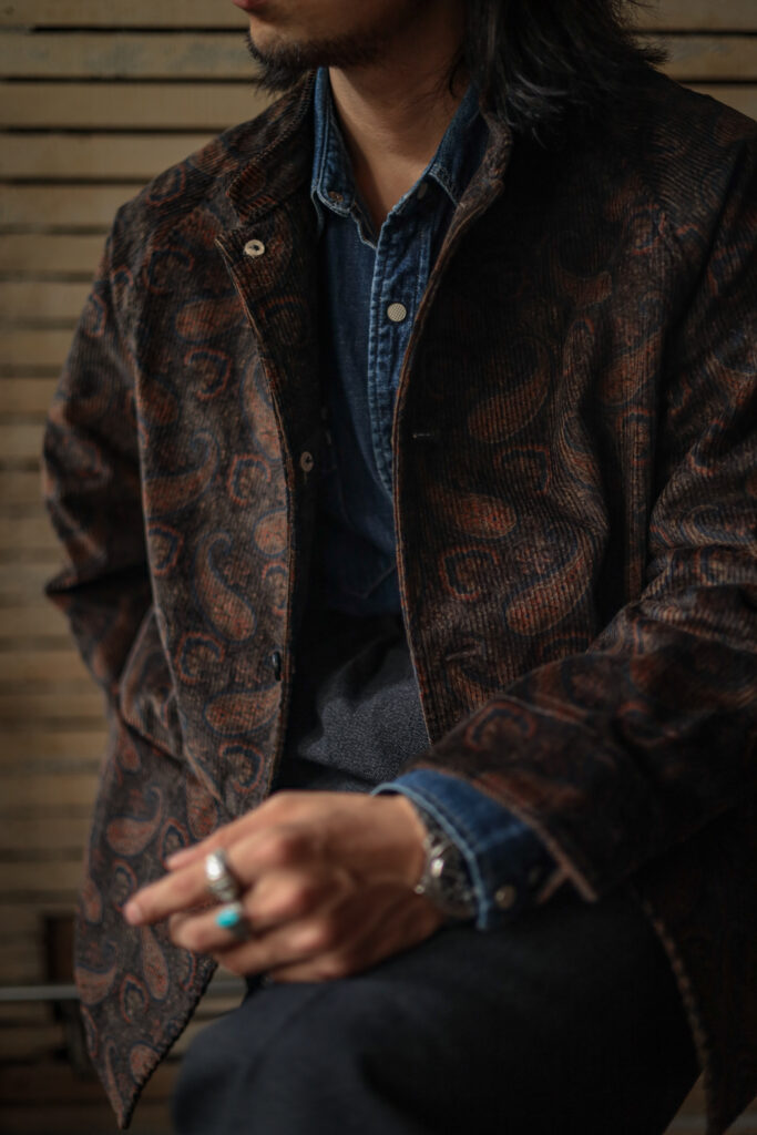 その矢先に今回の25AWコレクションでコーデュロイが登場し、rdv o globeで製作されたコーデュロイは、ペイズリー柄と杢グレー。