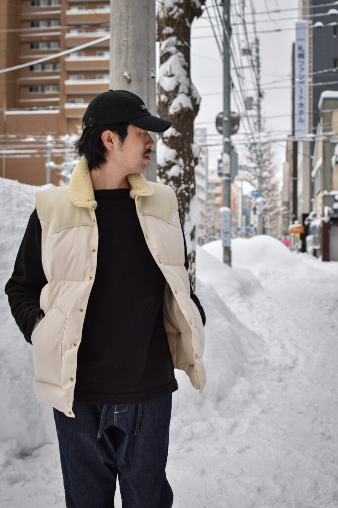 チマヨベストやロッキーマウンテン、共地のBUTTONLESS CARDIGANとのアンサンブルもお勧めです。