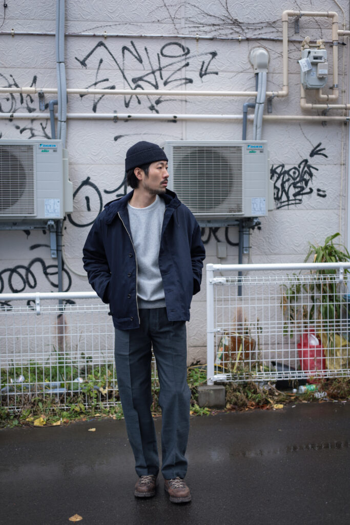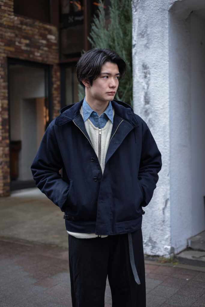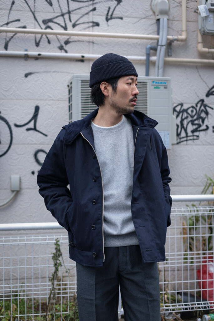 肉厚なウールを採用している為、袖を通した際のリブのホールド感や肩周りのフィット感はオリジナルを改善しストレスなく着用できるサイジングへと昇華しました。