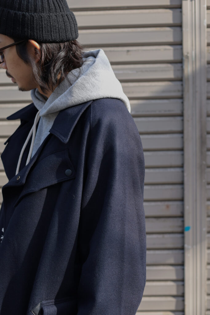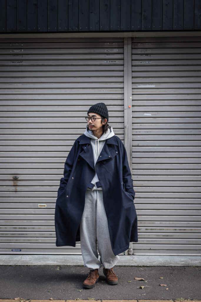上下スウェットに羽織るだけでも様になるのは、やはりこのコートが放つオーラでしょうか。。