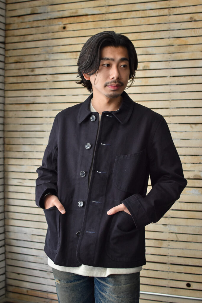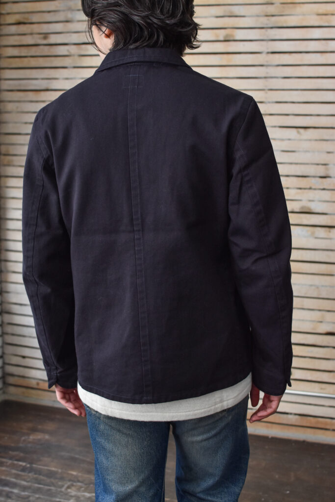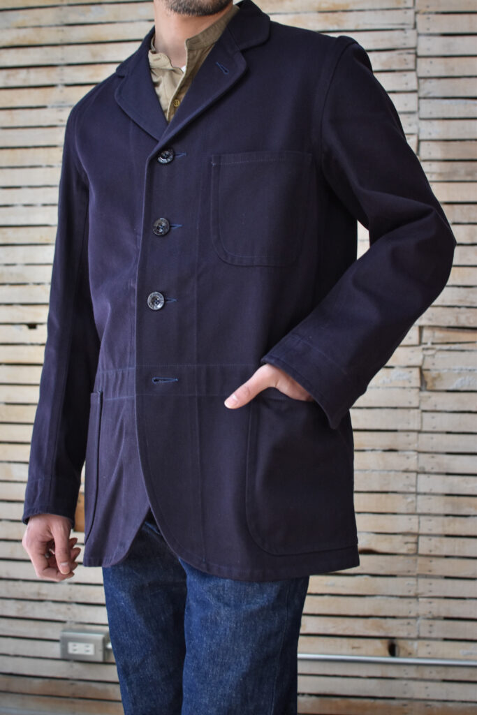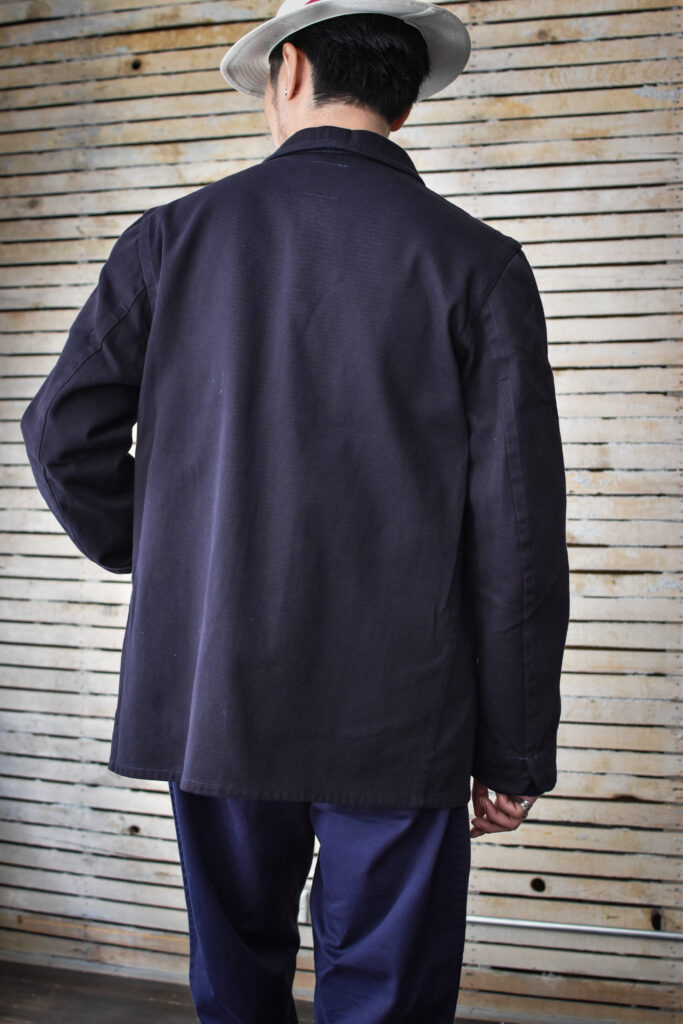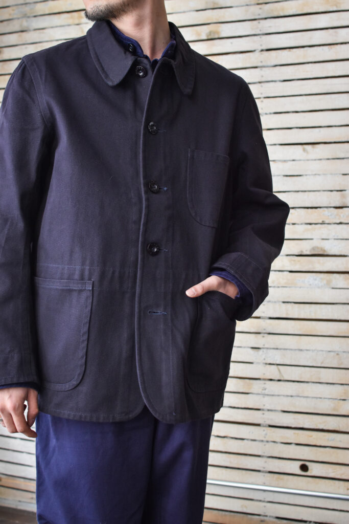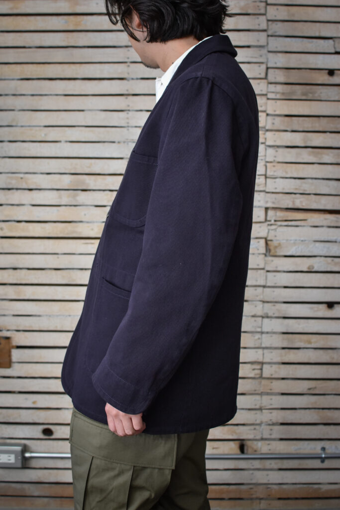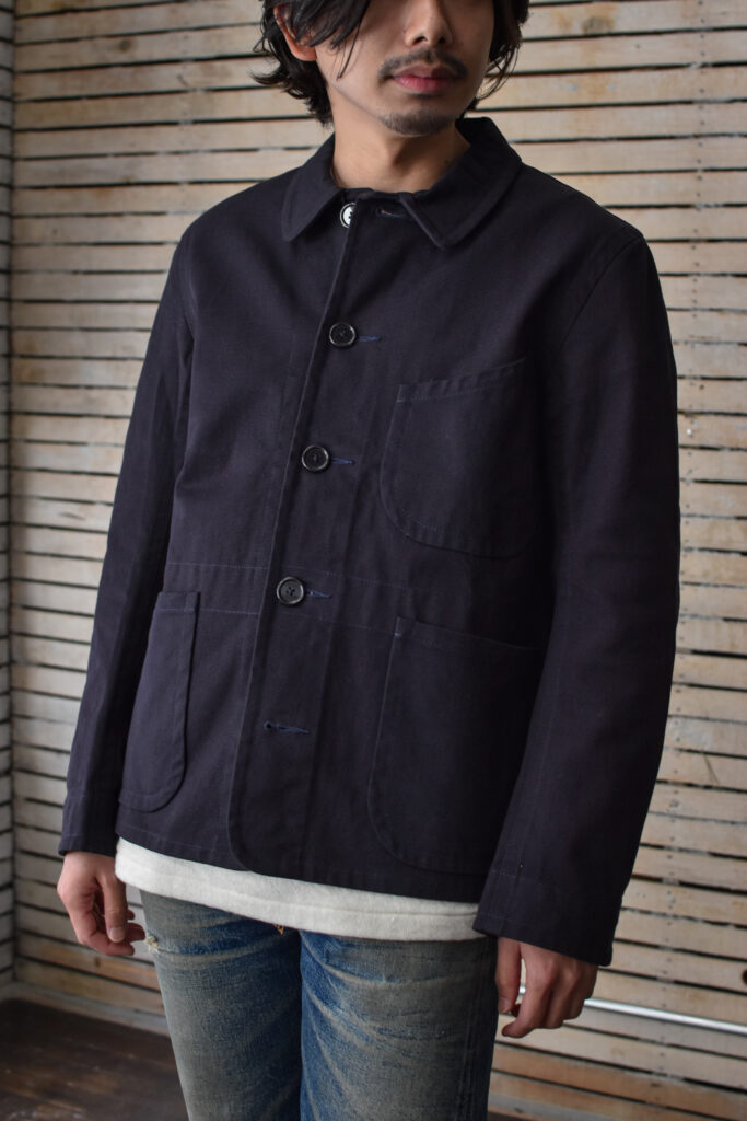 フランスのワークジャケットにもよく見られる可愛げのあるディテールですが、それと比べると構築的で無骨な表情。