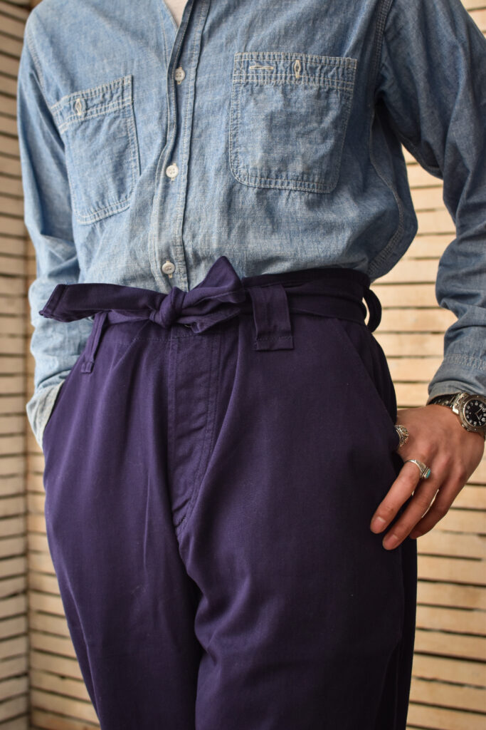 ドリル生地のものは、ボロージャケットとの組み合わせが特に人気です。