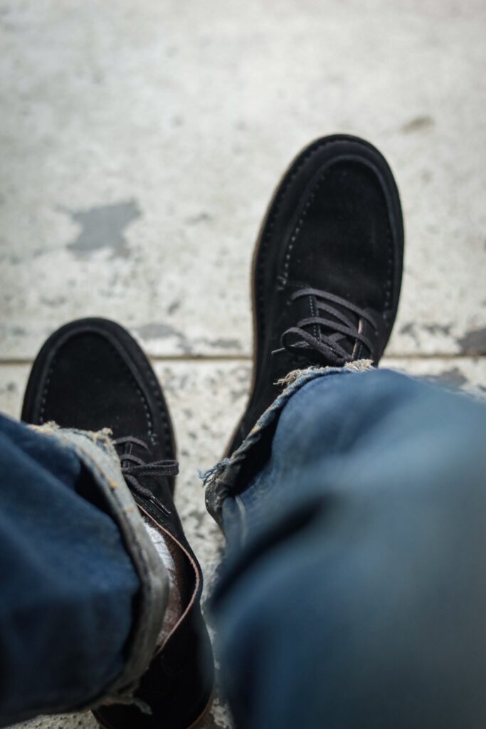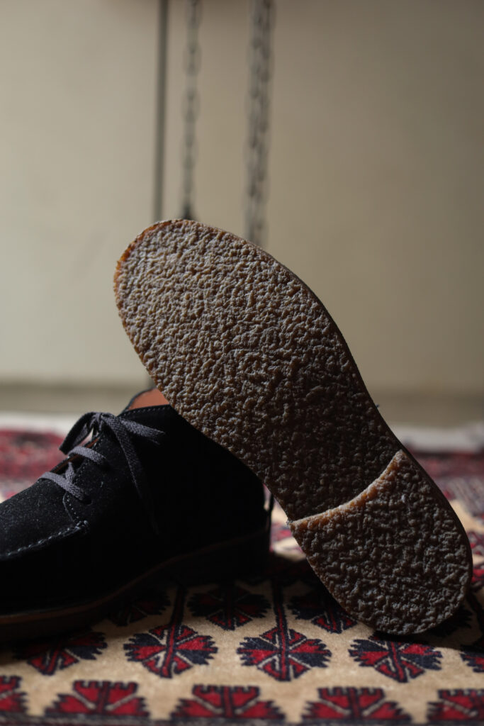 感覚的にスウェードは表革の革靴よりも蒸れにくく、夏の雨の日のレインブーツとして、そしてクレープソールは冬の雪道でも滑りづらい。