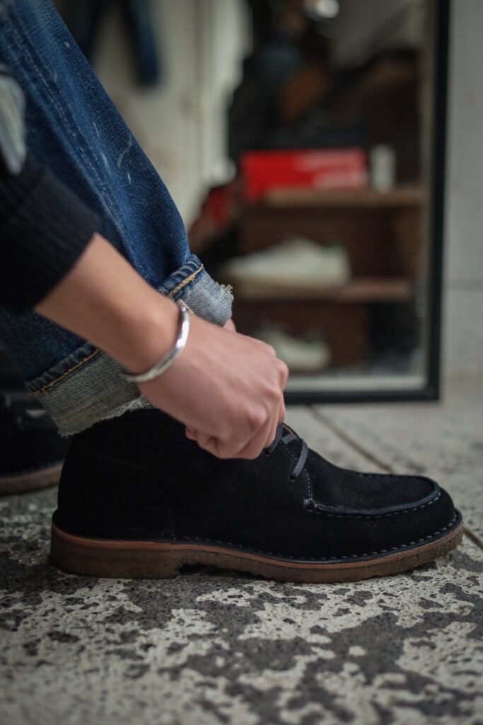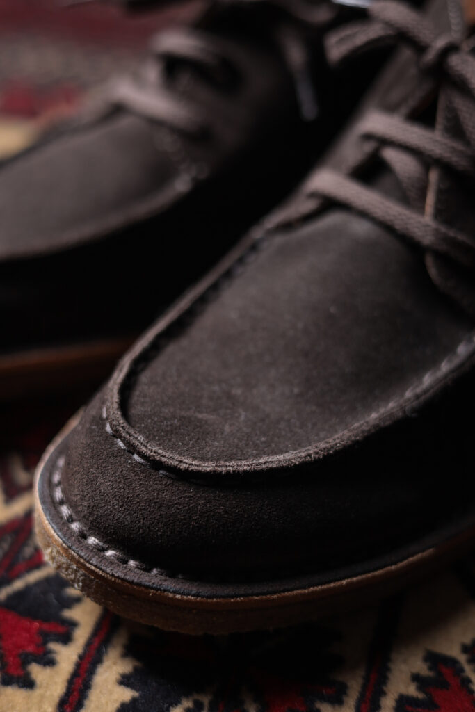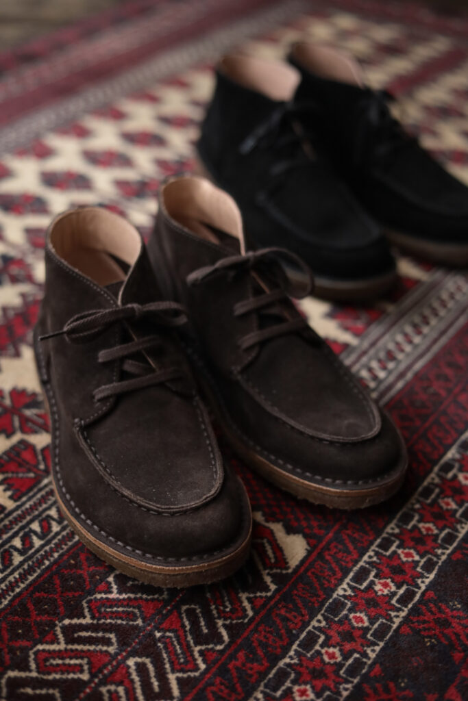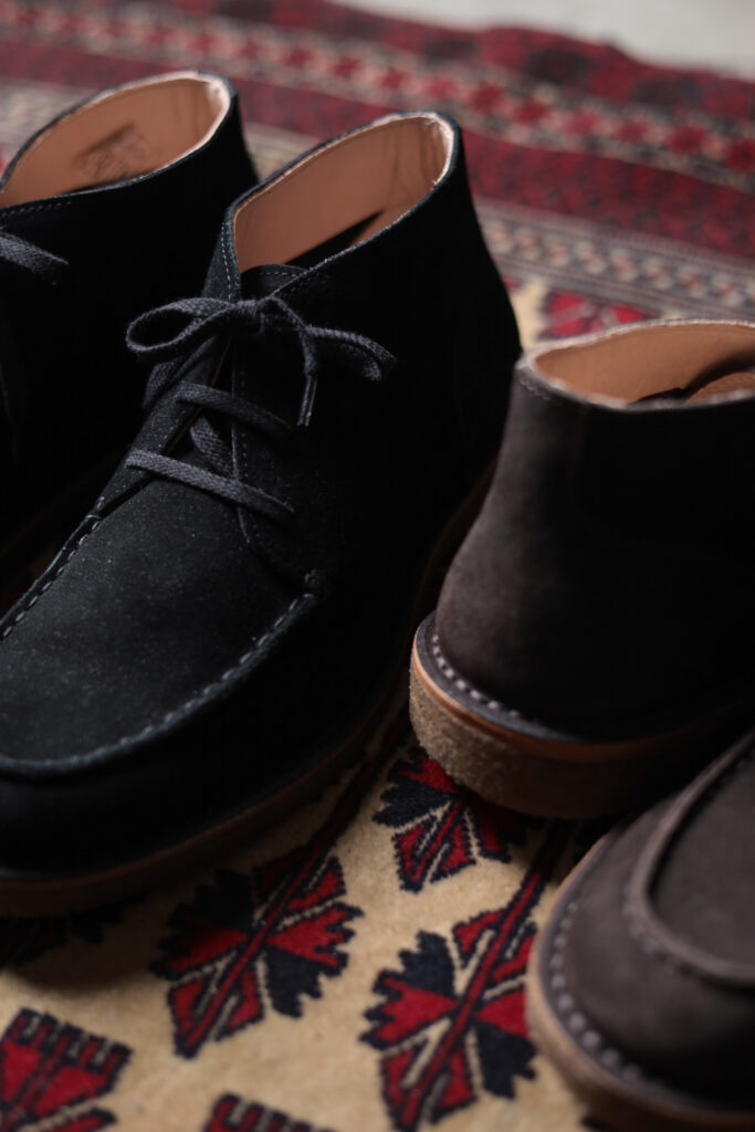 昨年のチャッカブーツに変わり、今回展開するのに選んだモデルは、つま先がU字状に縫われた「モックトゥ」のチャッカブーツ。
