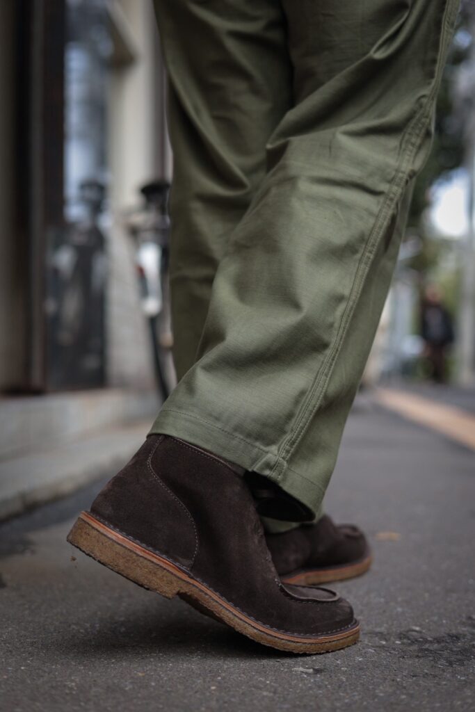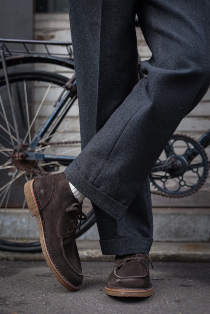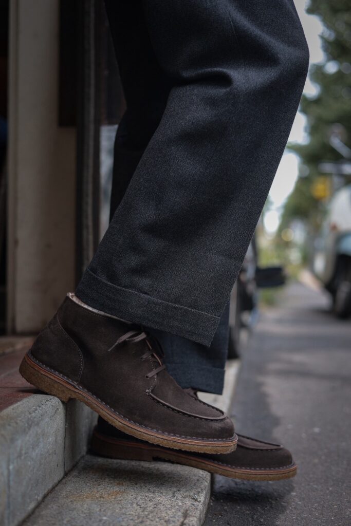 デザートブーツは様々なボトムスに馴染んでくれるのも魅力。