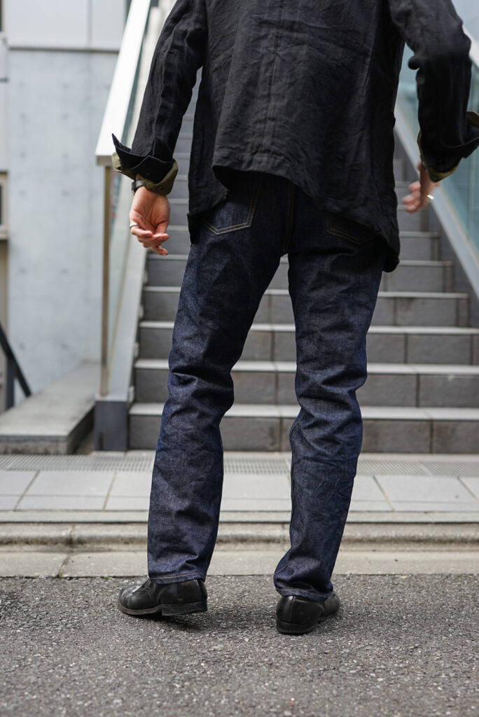 70sから90sにかけてのLevi’s 501に見られるような、すっきりとしたストレートテーパードなシルエット。