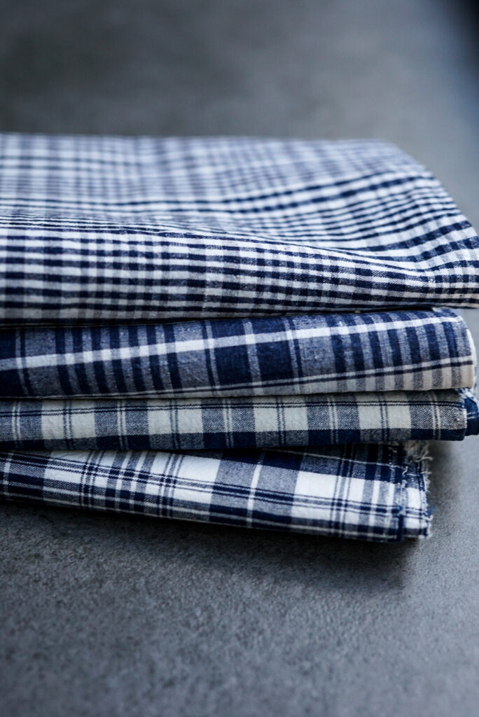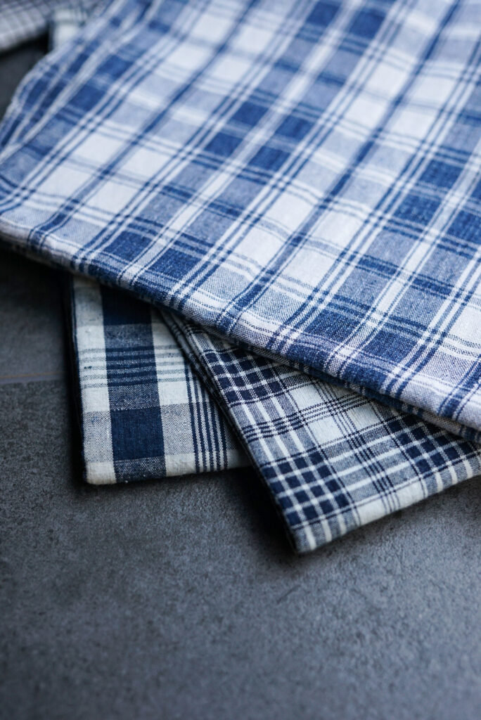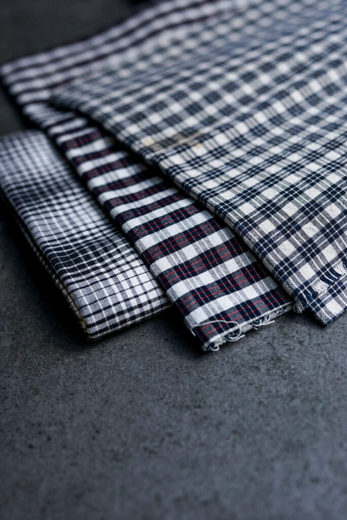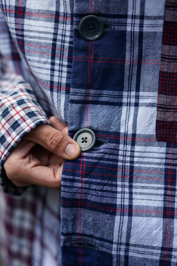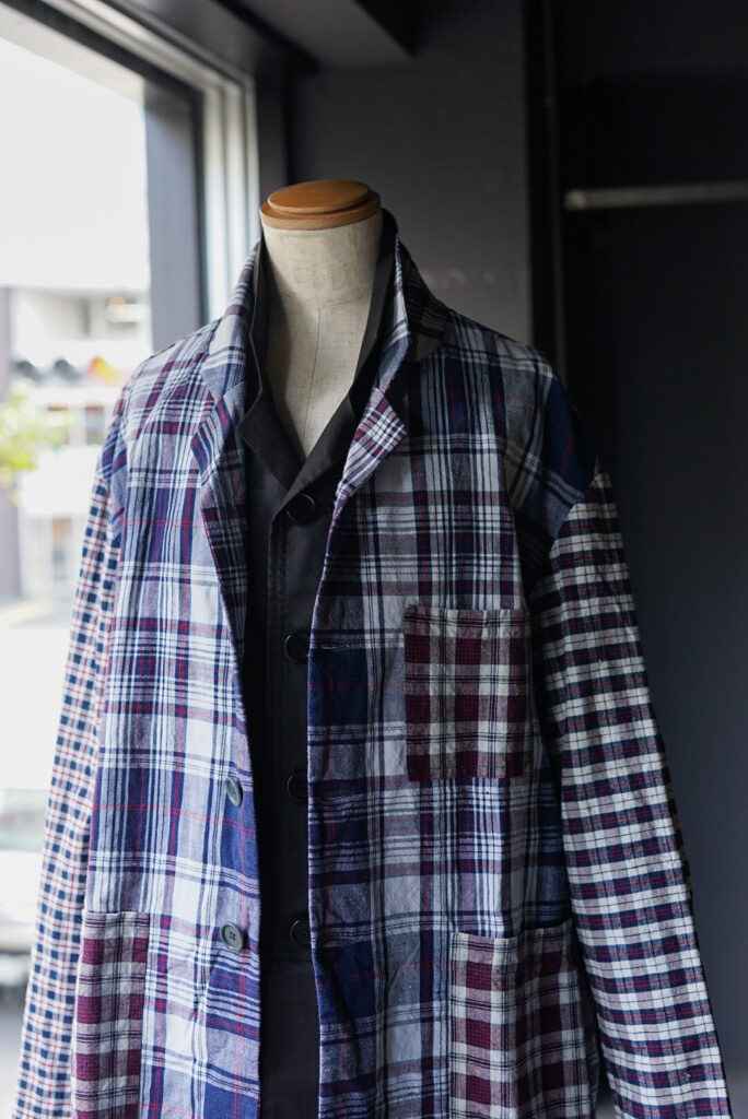 サンプルとして仕上げてもらったこの配色は、写真で見るよりもずっと落ち着いた雰囲気で数種類のチェックを組み合わせているのに、チグハグな印象は全く感じません。