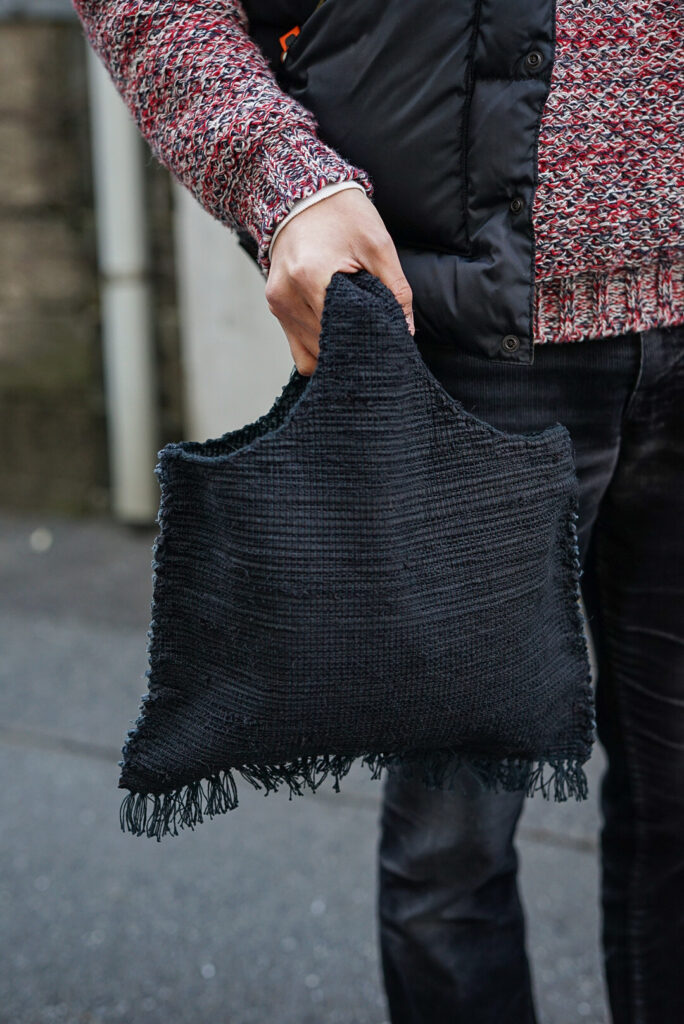 手織り生地を使用したバッグの形は何が良いかと考えていたときに、いつもならああでもないこうでもないと色々悩むのですが、すぐに閃きました。