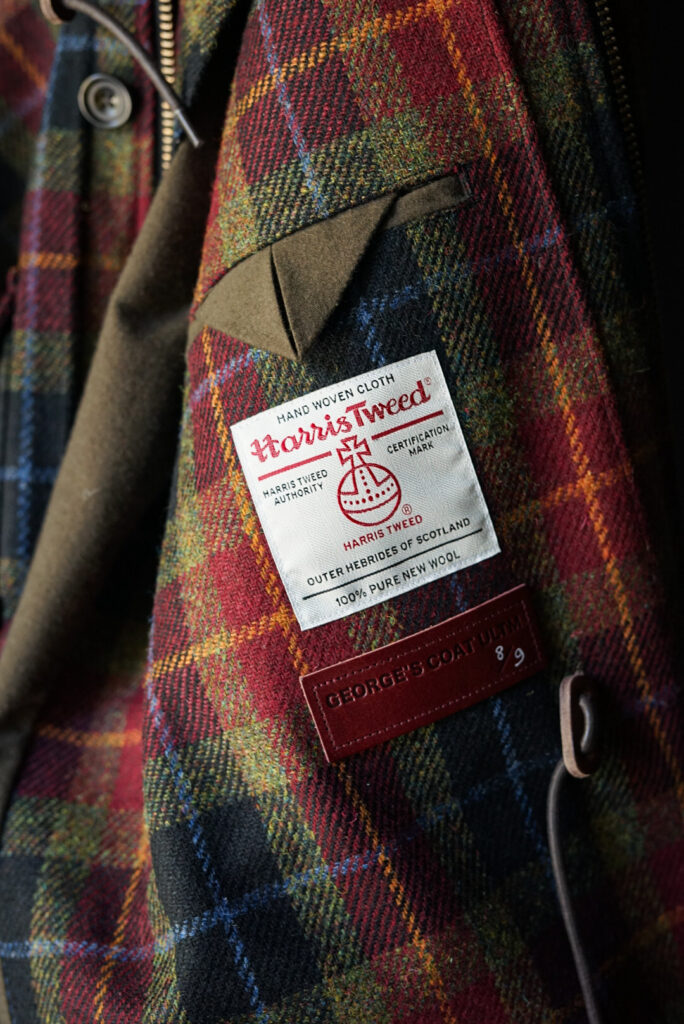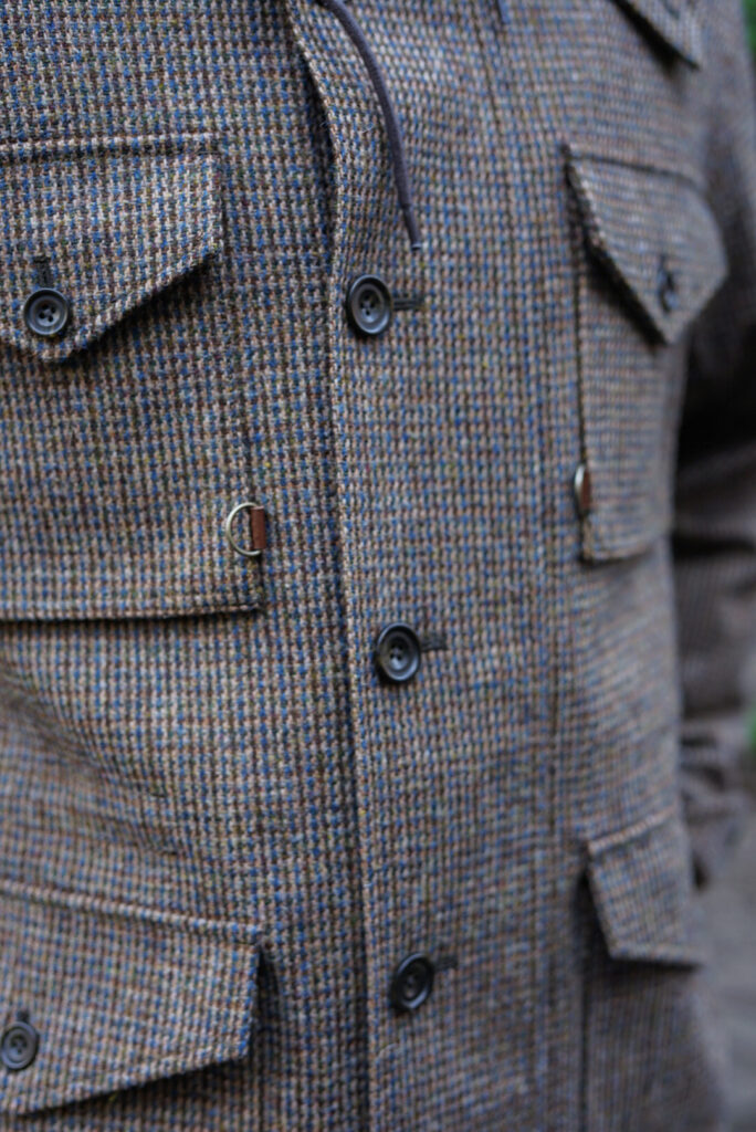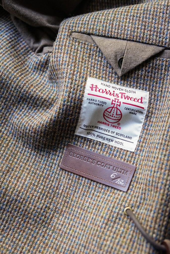 表と裏地には生地サプライヤーがストックしていたもので、現在の生地番地ではなかなかお目にかかれない、貴重なHARRIS TWEEDのツイードを贅沢に使用。
