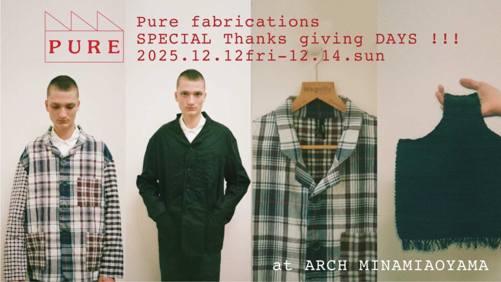 また、12/12(土)13:00~デザイナーのMarckにARCH南青山に在店いただきます。(予定によって在店時間が変わる可能性がございます。)12日も同じくデザイナーと話しながら最新のコレクションPure fabrications × ARCH限定のプロダクトをオーダーいただけます。
