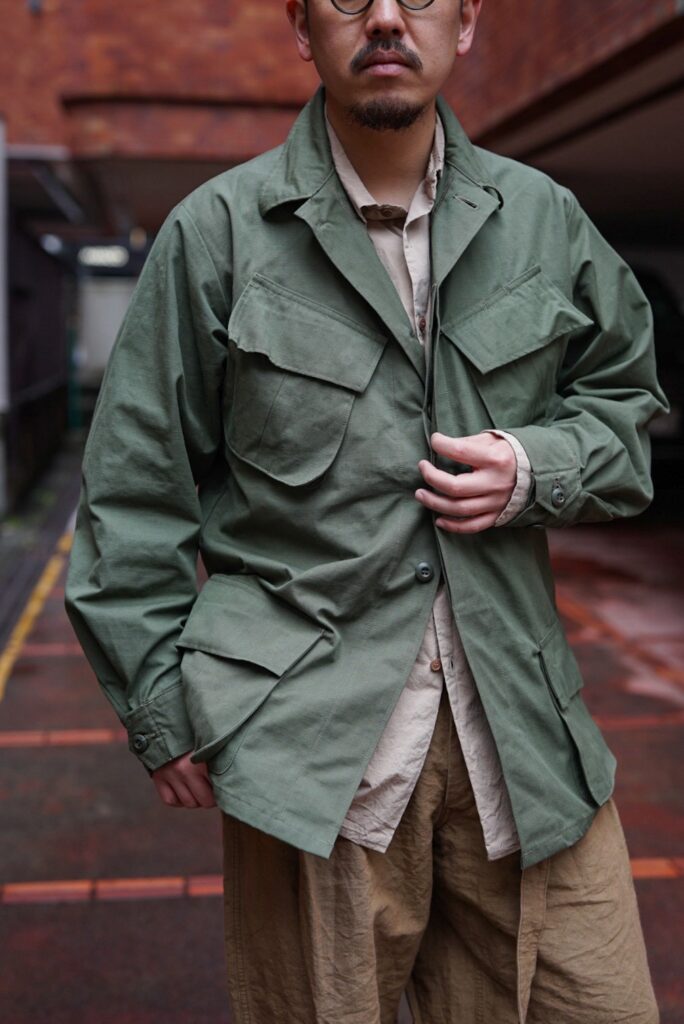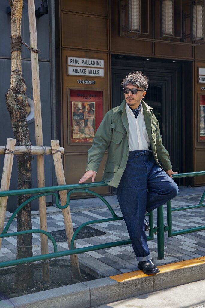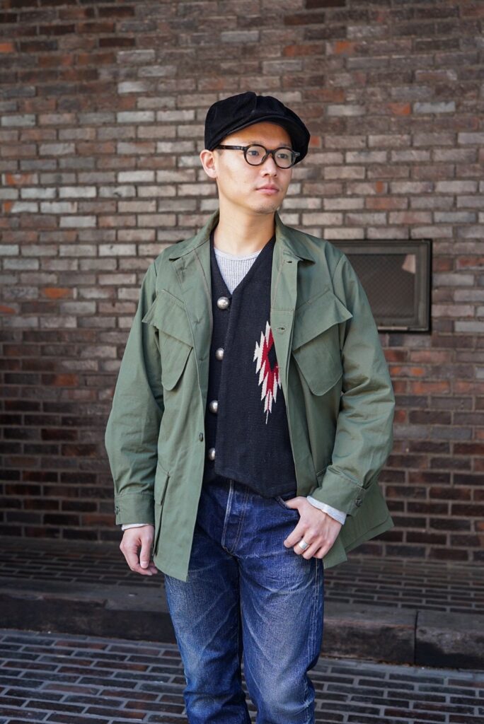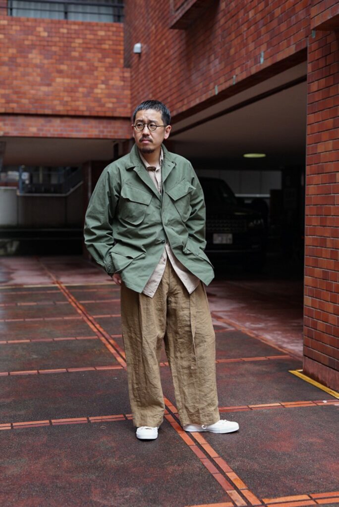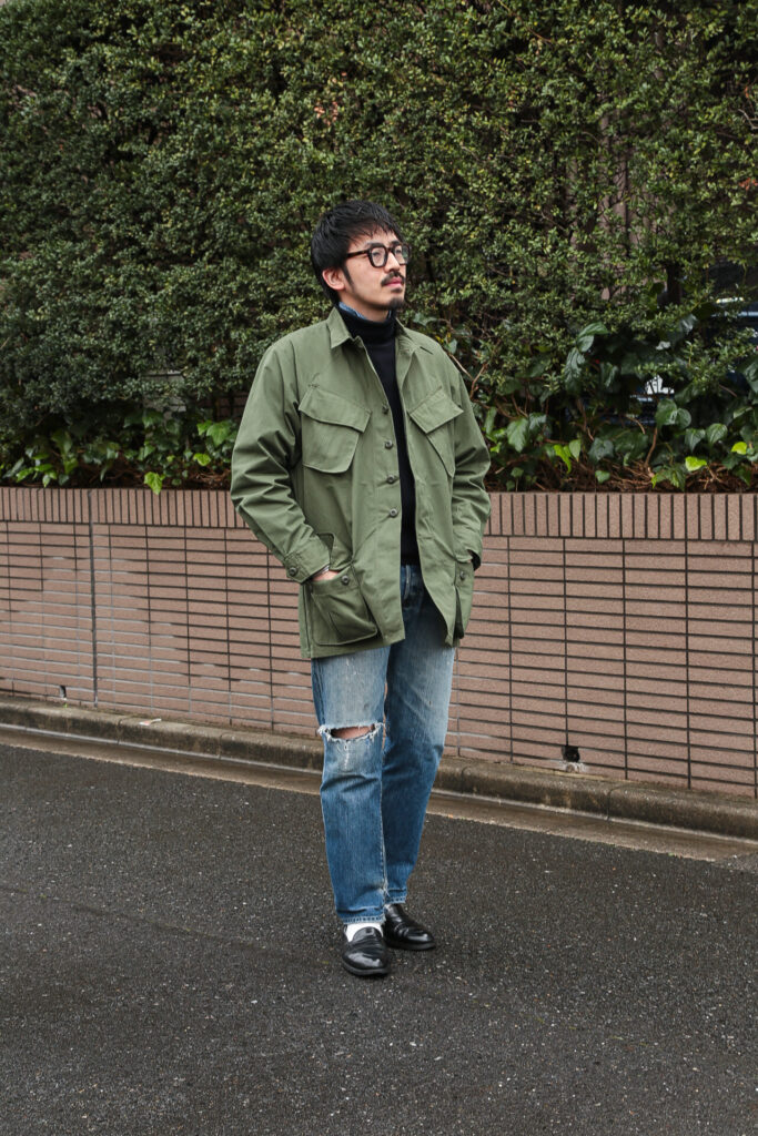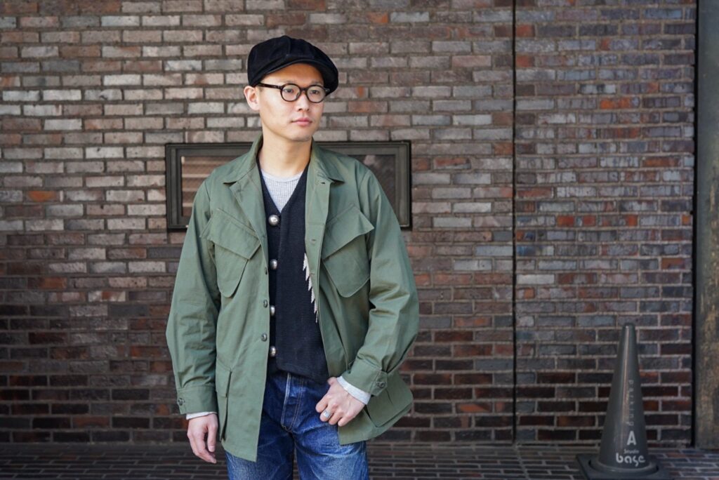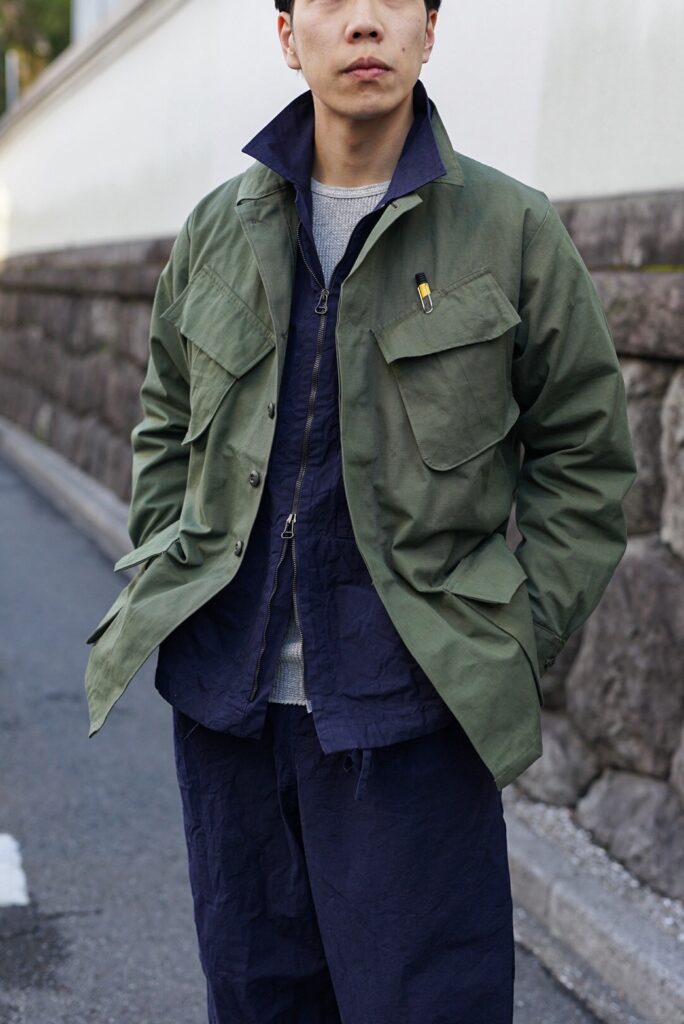 このJUNGLE FATIGUE JACKETのコーディネートを組んでもらいました。