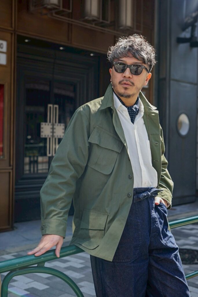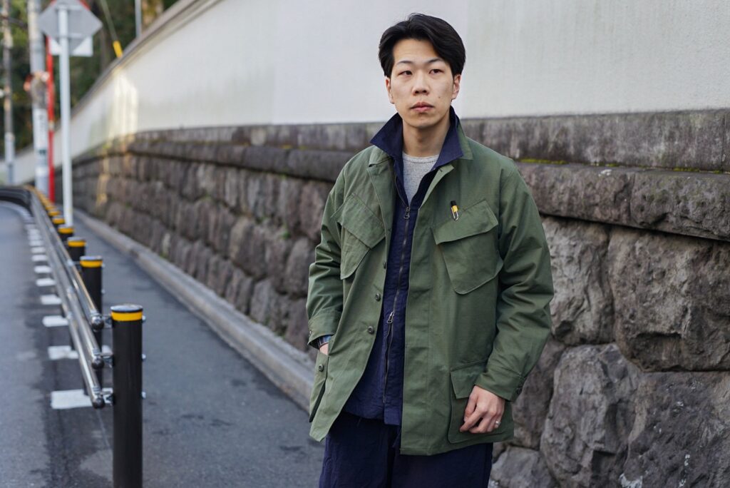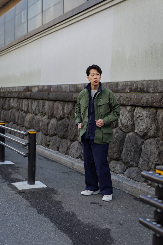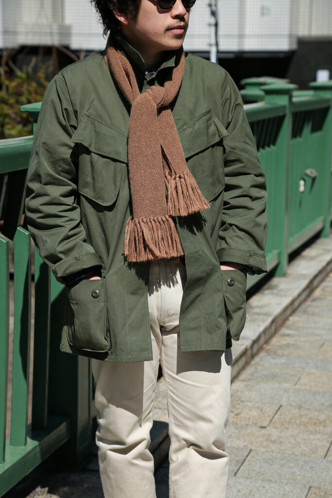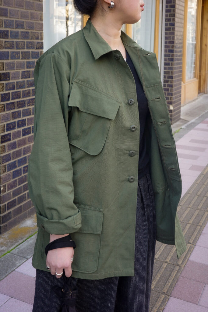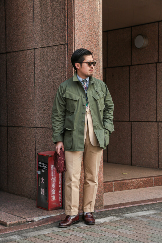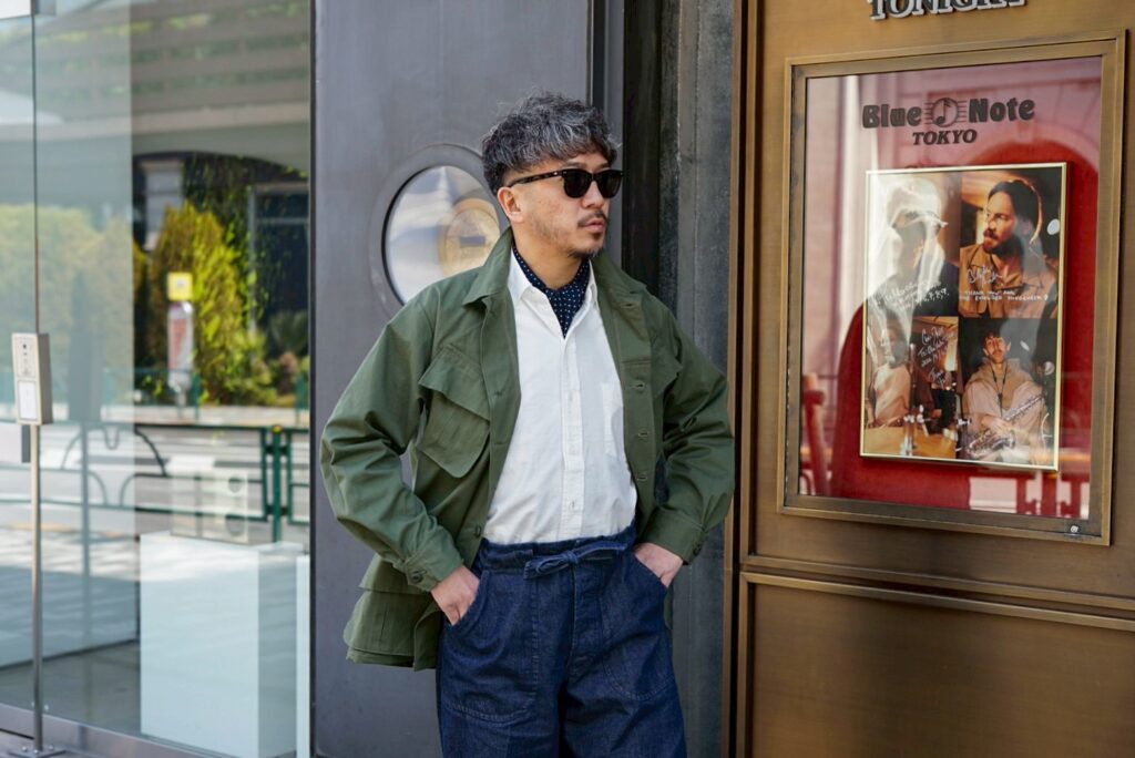 このJUNGLE FATIGUE JACKETのコーディネートを組んでもらいました。