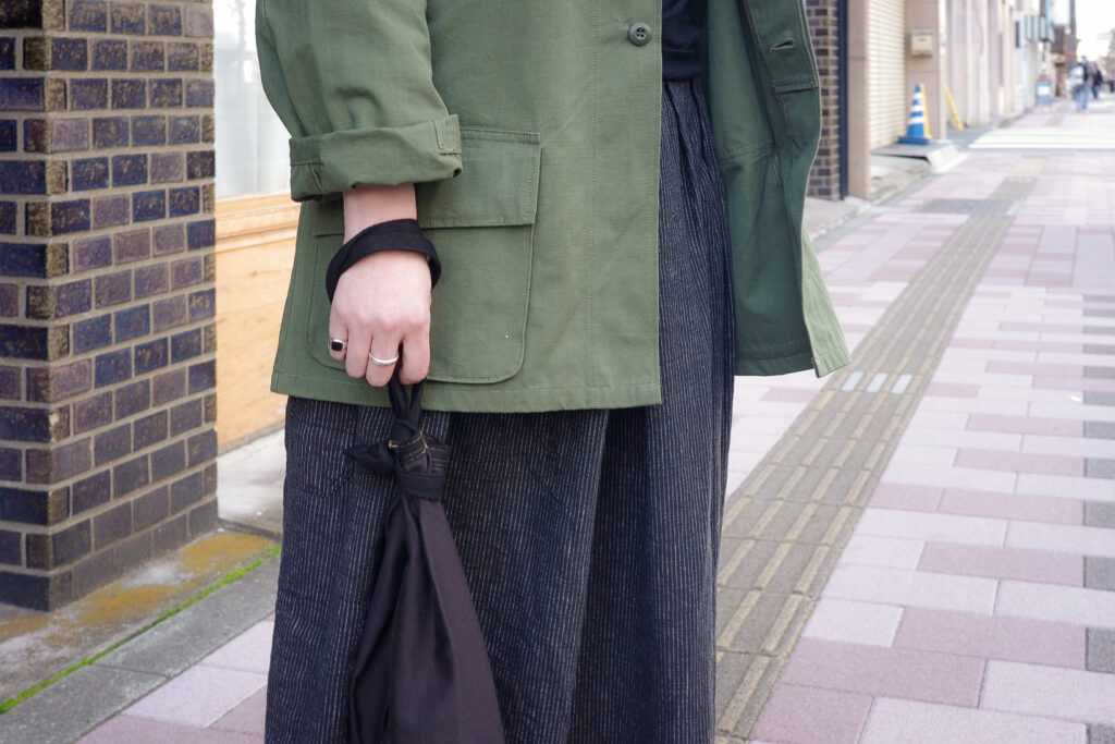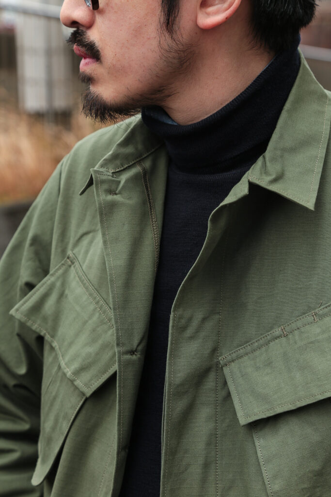—- We made original cotton ripstop fabric, bridging military uniforms and fashion.
