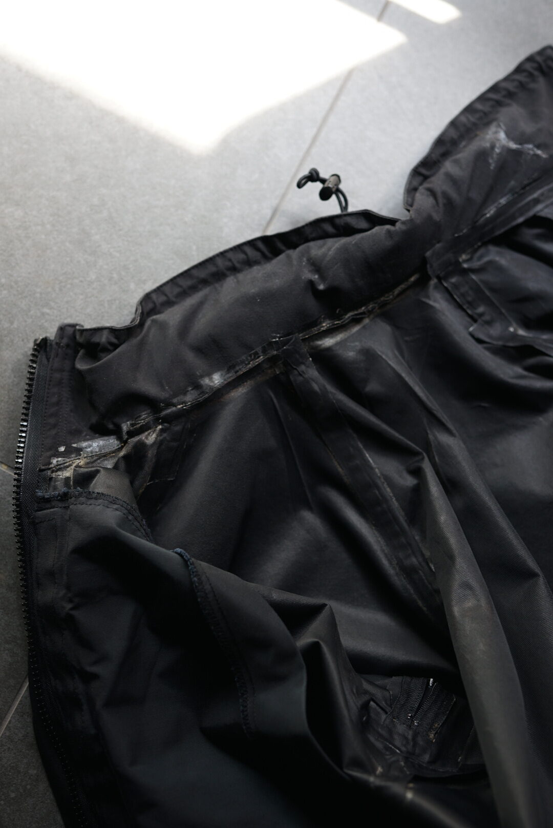 私自身何度も自分で新品のシームテープに貼り直していますが、年に1回は貼り直さないとまた剥がれてくるのと、見た目が汚く、着るシチュエーションをどうしても選ぶという大きなデメリットがあります。