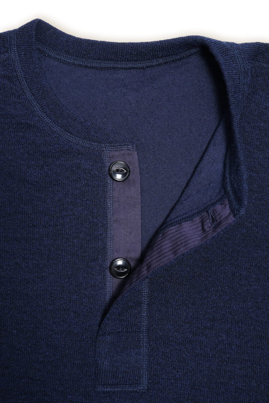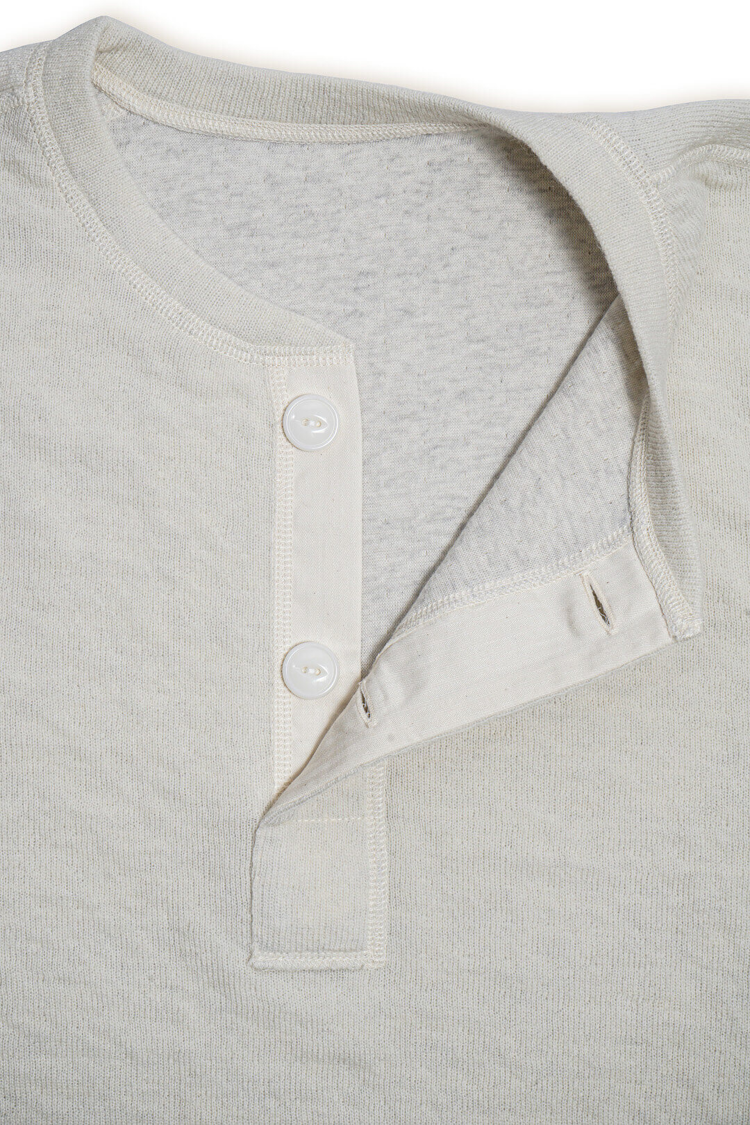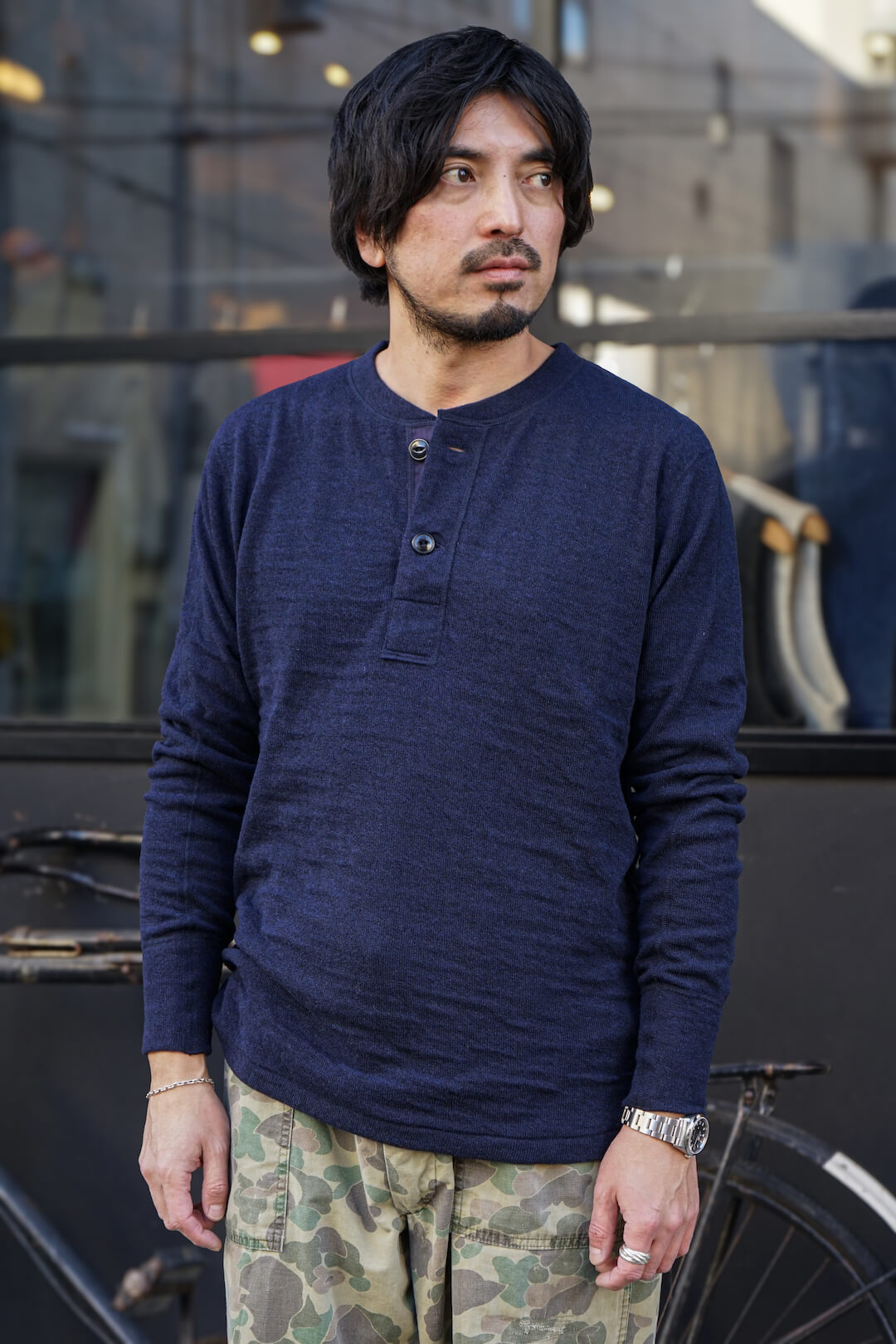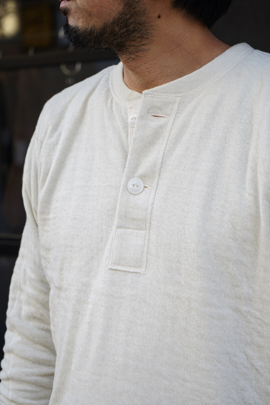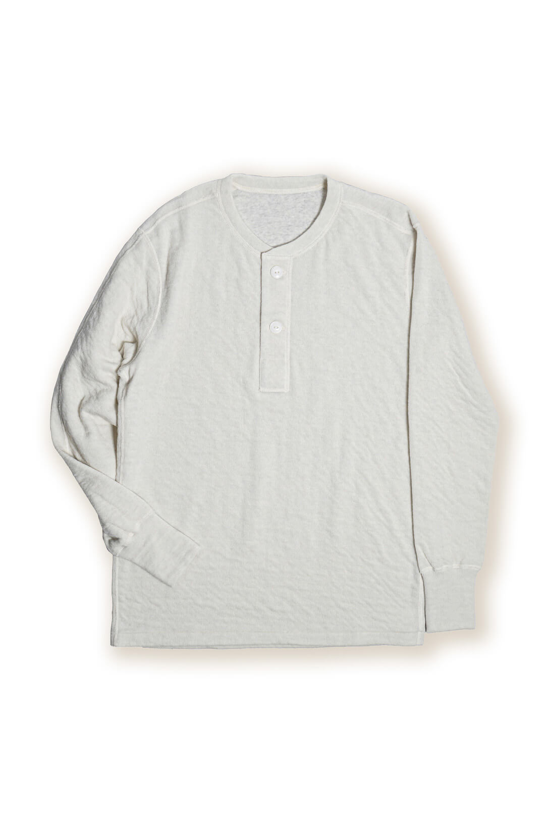 古き良きアメリカのアンダーウェアをベースに、1枚での着用もイメージしアップデートを施した、2レイヤーのヘンリーネックニットソーです。