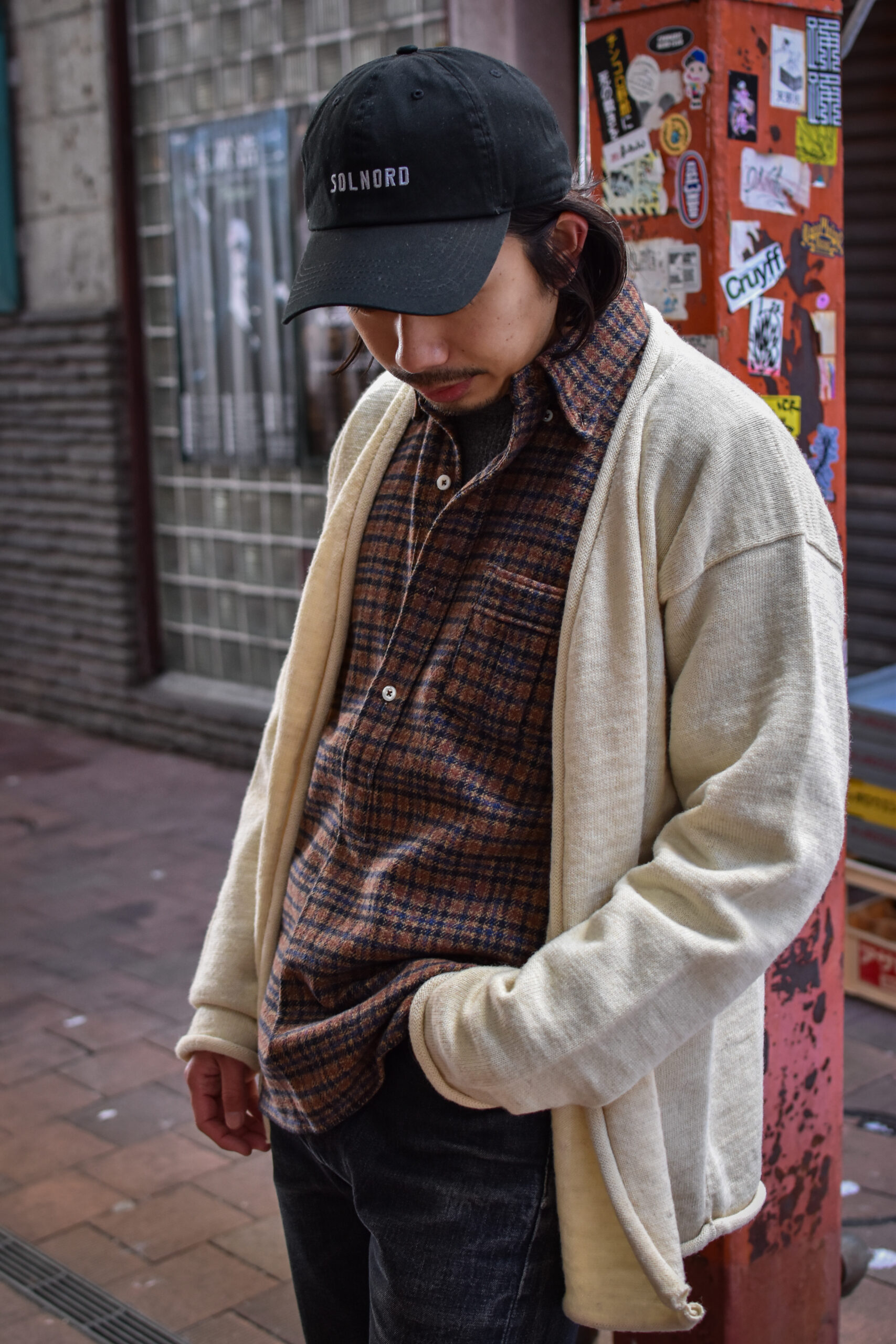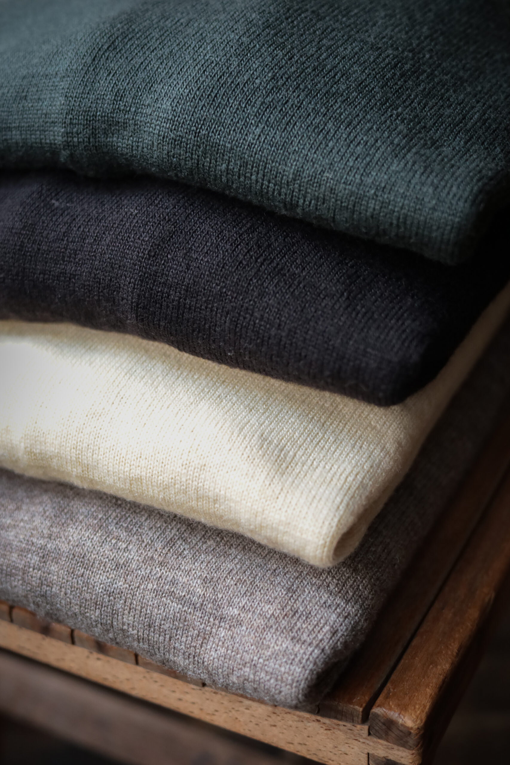 〈SOLNORD〉のアイテムは、原毛の調達から糸の企画、パターン設計に至るまで、ブランド独自の哲学に基づいて生み出されています。リラックスした着心地と、着用を重ねるごとに感じられる生地の変化や体への馴染みが魅力です。
