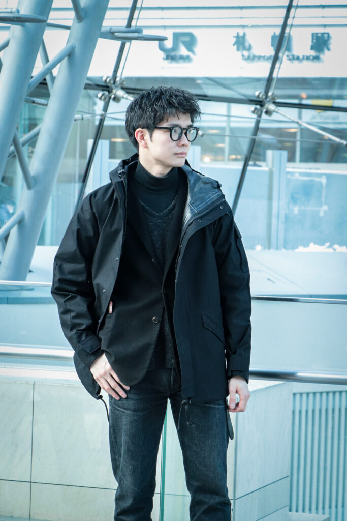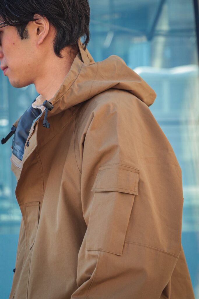 ラグランスリーブであることで厚手のセーターやスウェットなど、中に着るものも選ばないため、ECWCSが本来持つレイヤリング機能を活かし、屋内、外で寒暖差のある冬や、朝晩での寒暖差のある春、秋にも着られる”3シーズン対応可能”なアウターと言える。