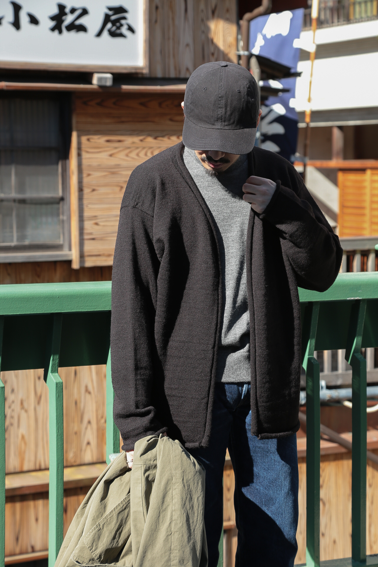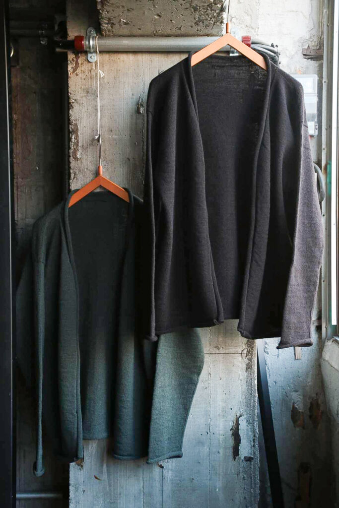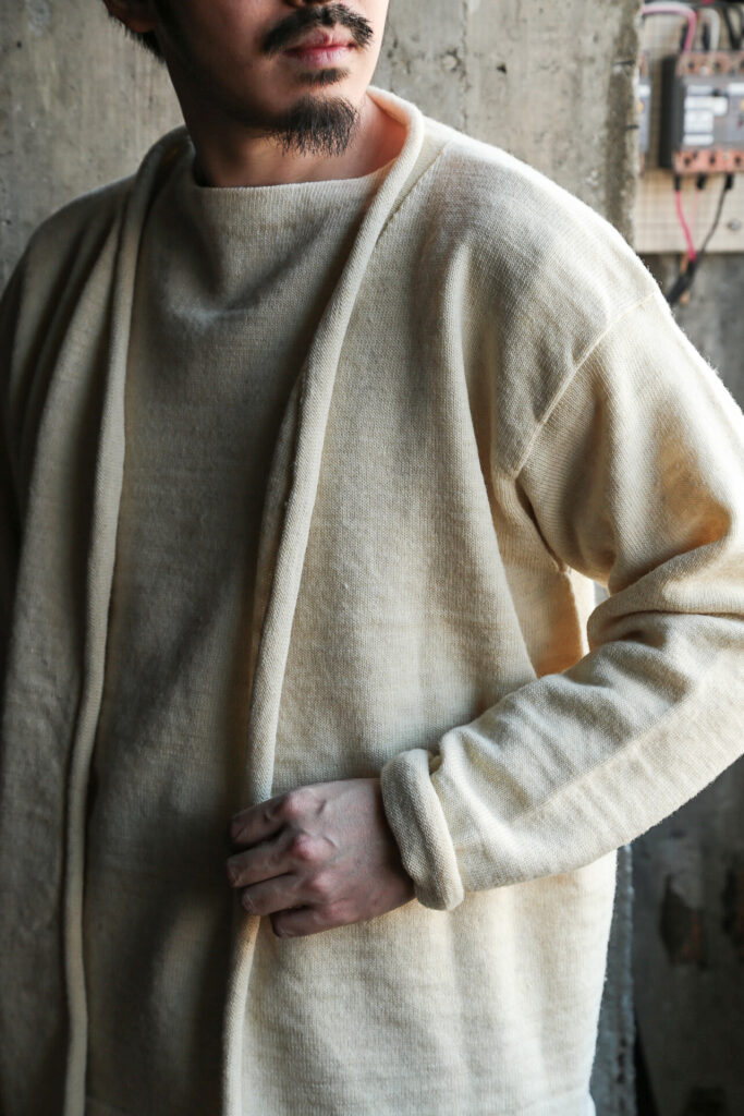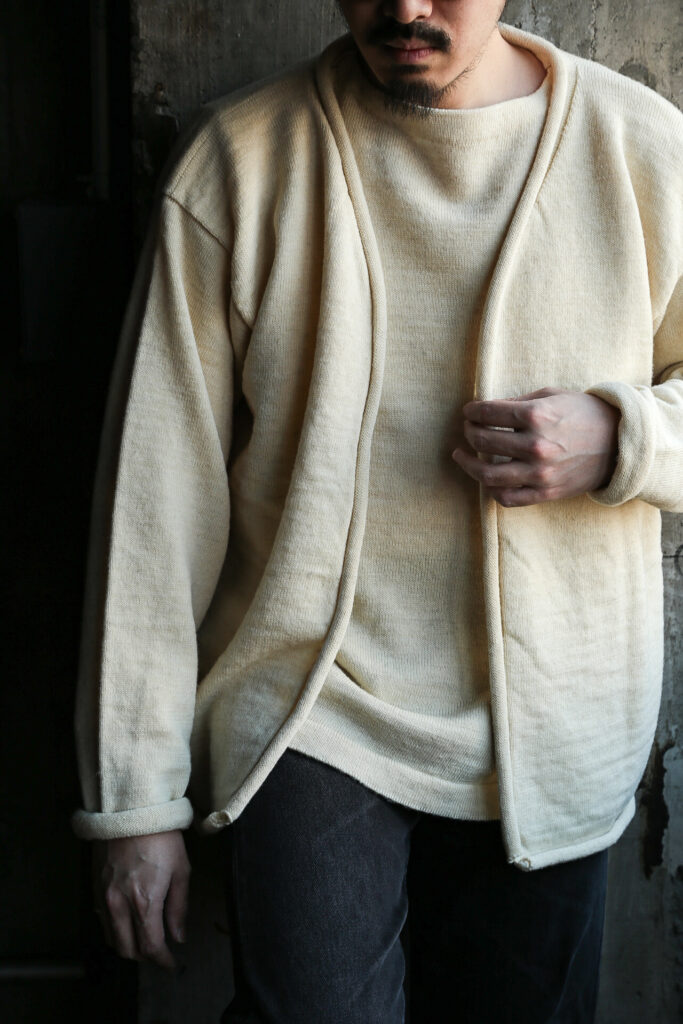 この“BUTTONLESS CARDIGAN”は、SOLNORD流ニットカーディガンなのです。