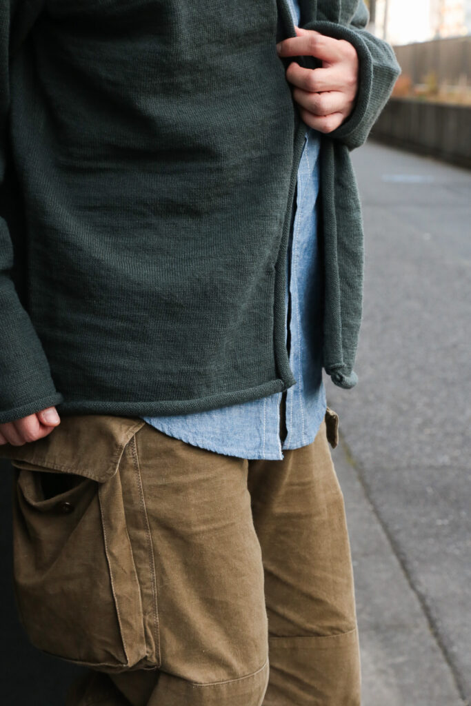 “FOREST GREEN”は、グレイッシュなグリーンなので、ミリタリートラウザーのオリーヴにも馴染みます。