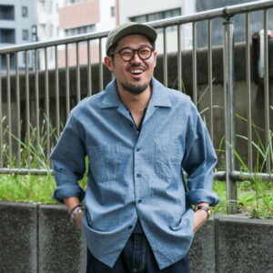 ハリ感がある目の詰まったシャンブレー生地は秋冬のウェイトのある洋服にも負けない存在感です。