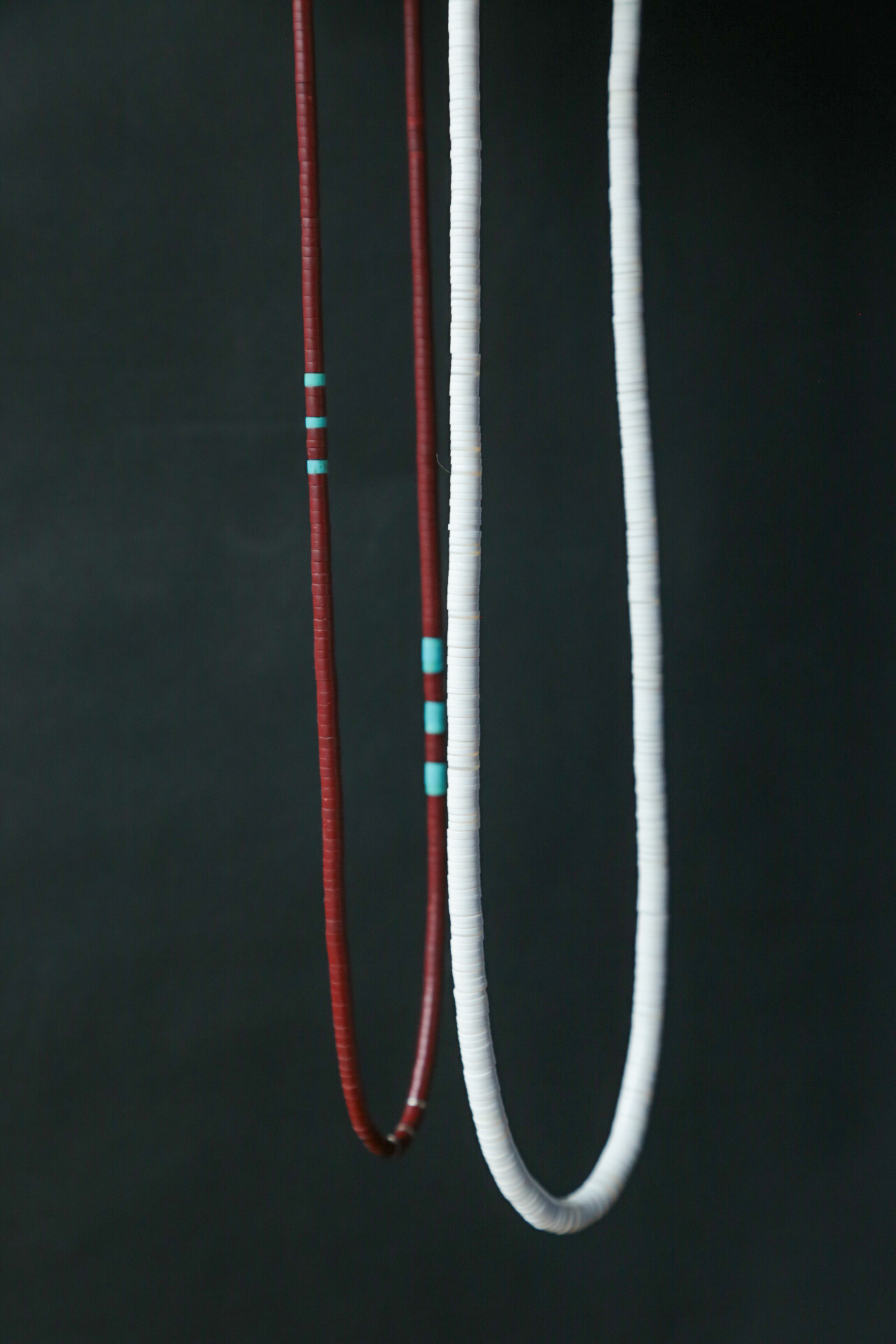 ホワイトシェルから製作されたビーズは、それぞれCalvin Lovato氏の仕事によるもの。