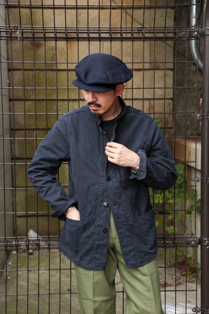 襟を寝かせて着られるのもBRITISH WORK JACKETの良いところ。