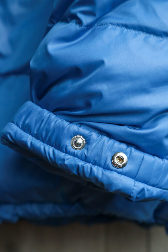 スポーツコートとの着用を考えて変更された袖口のドットスナップ、