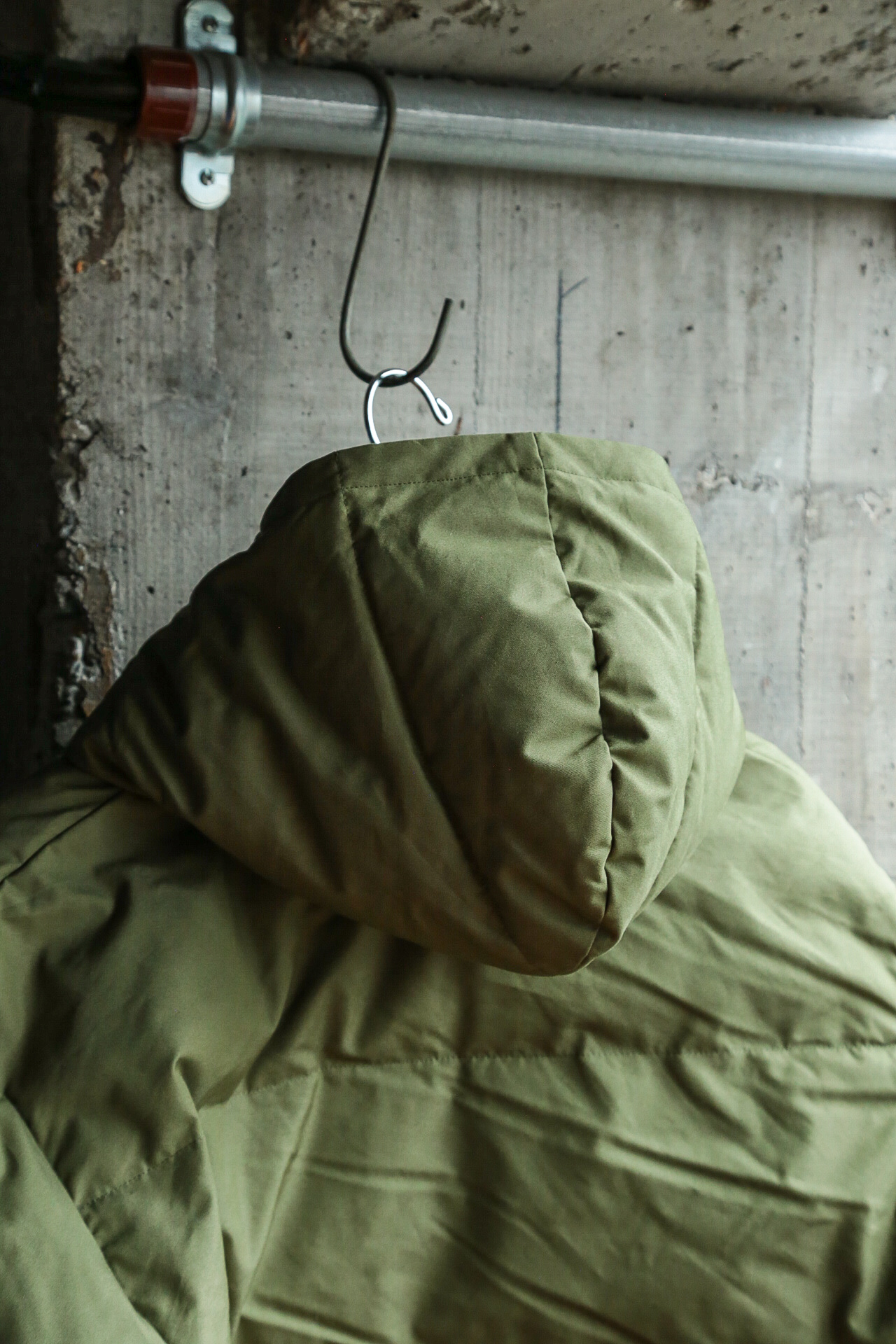 ミリタリーウェアーを彷彿とさせるオリーヴは、80年代ごろのUS ARMY M65 FIELD JACKETのシェルを再現したコットンナイロン素材です。