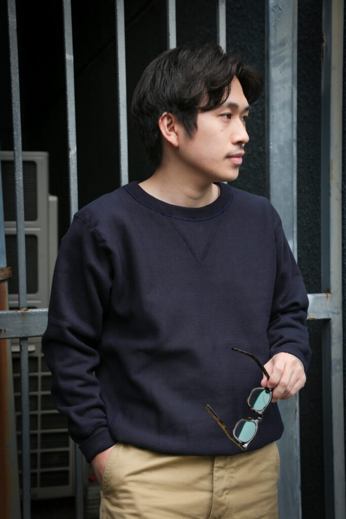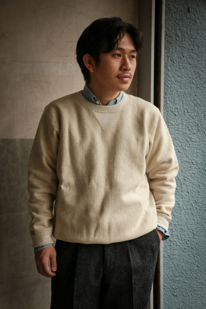 通称”両vスウェット”は前面と背面両方にVガゼットを配置したクラシックなディテール。