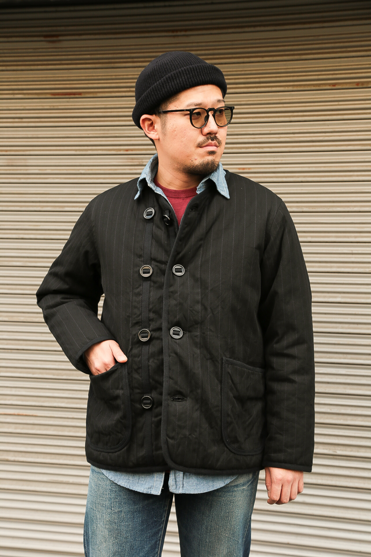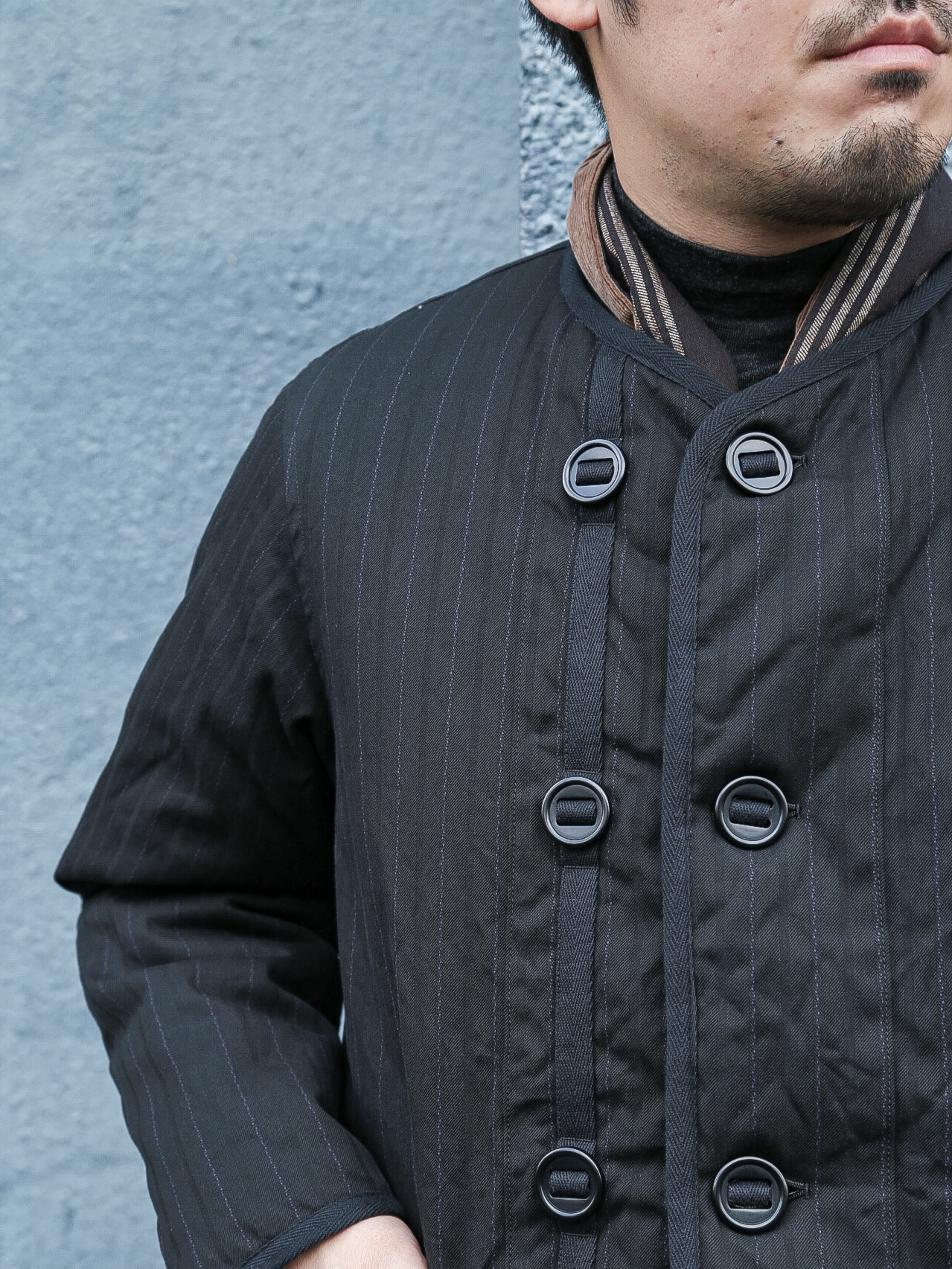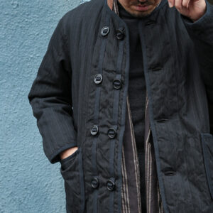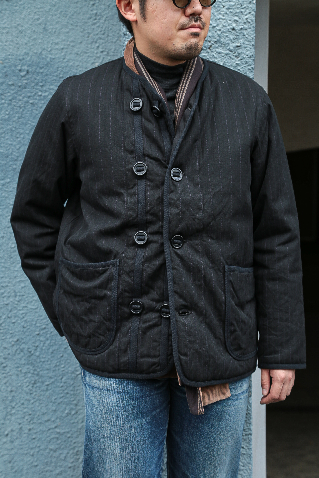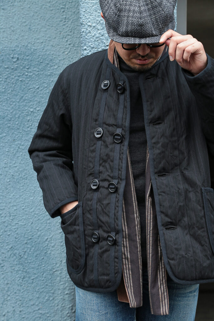 イギリス軍のライナージャケットから着想したノーカラーデザインは、さまざまな洋服との合わせが楽しめます。