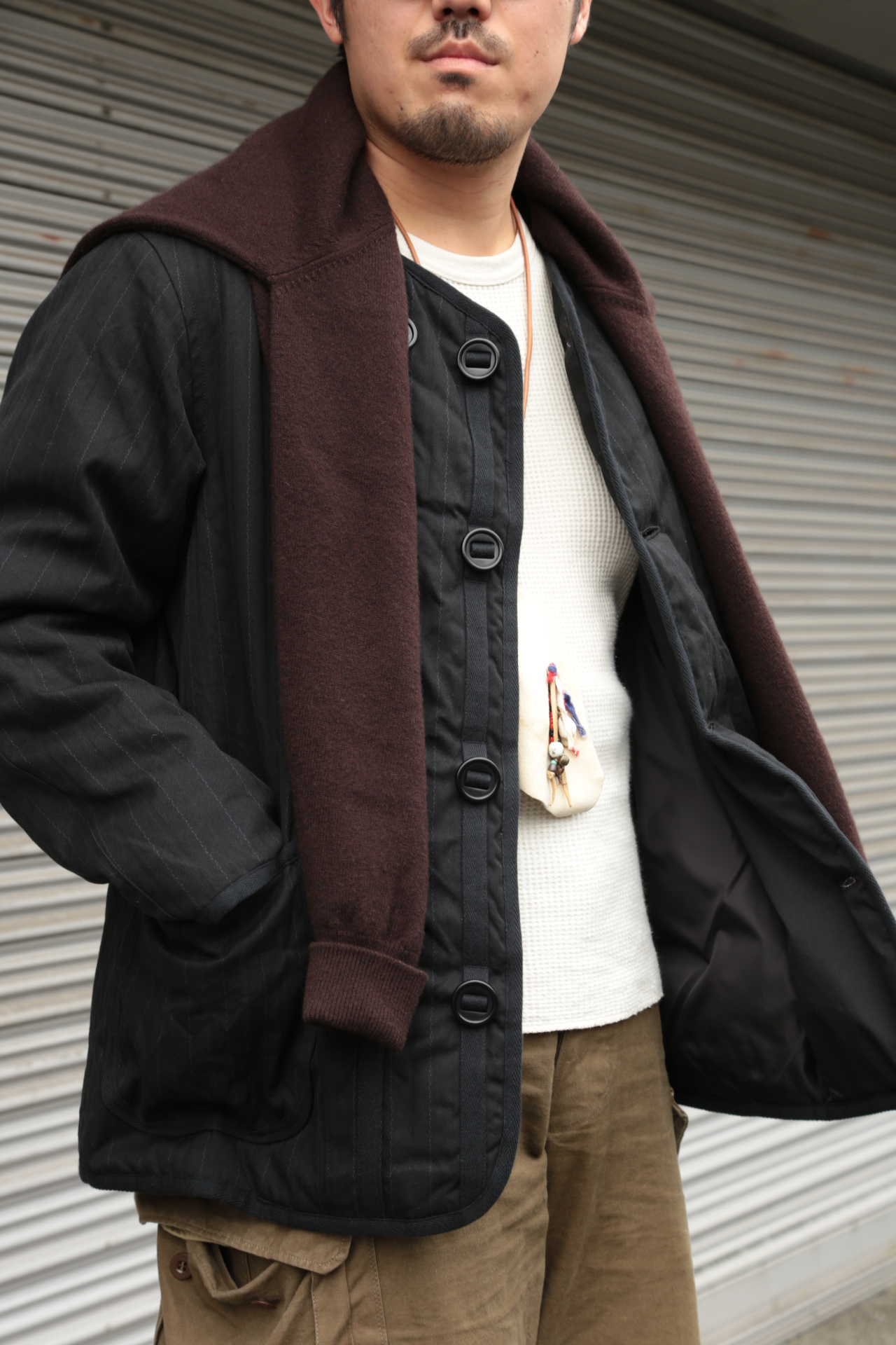 これから寒さが深まって行ったとき、ミリタリージャケットやデニムジャケットの上から羽織っていただくのも◎