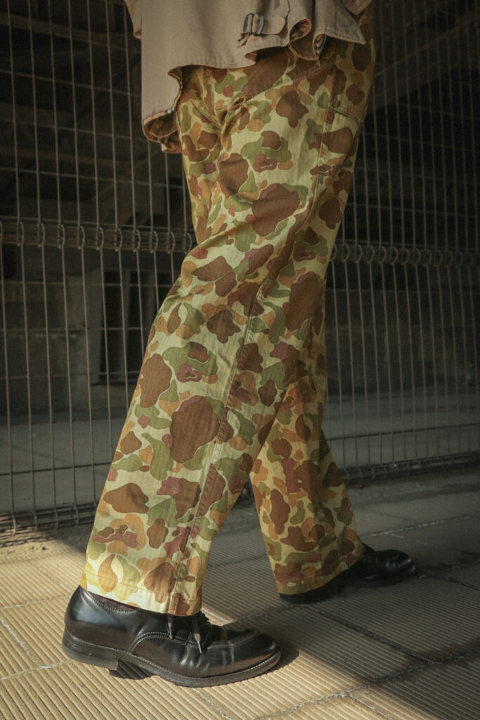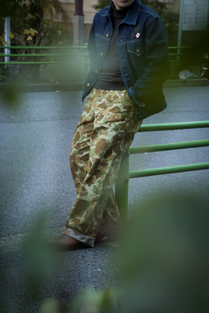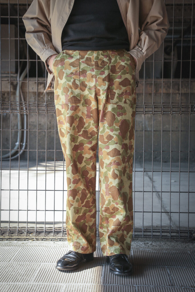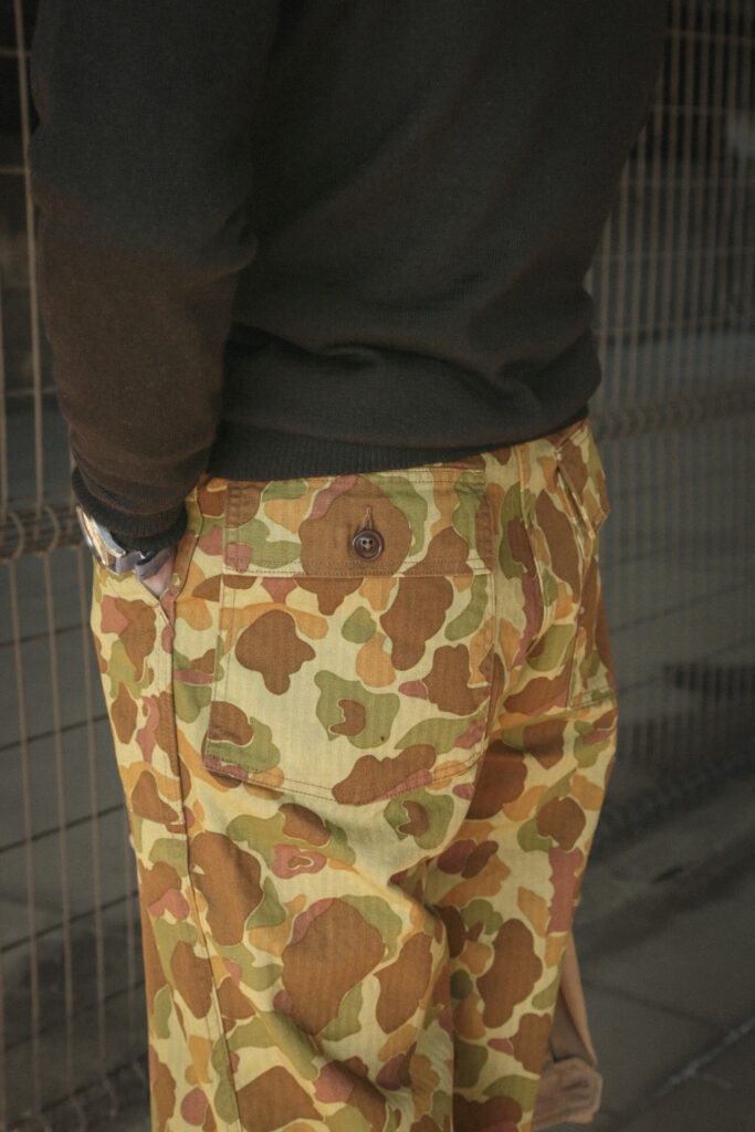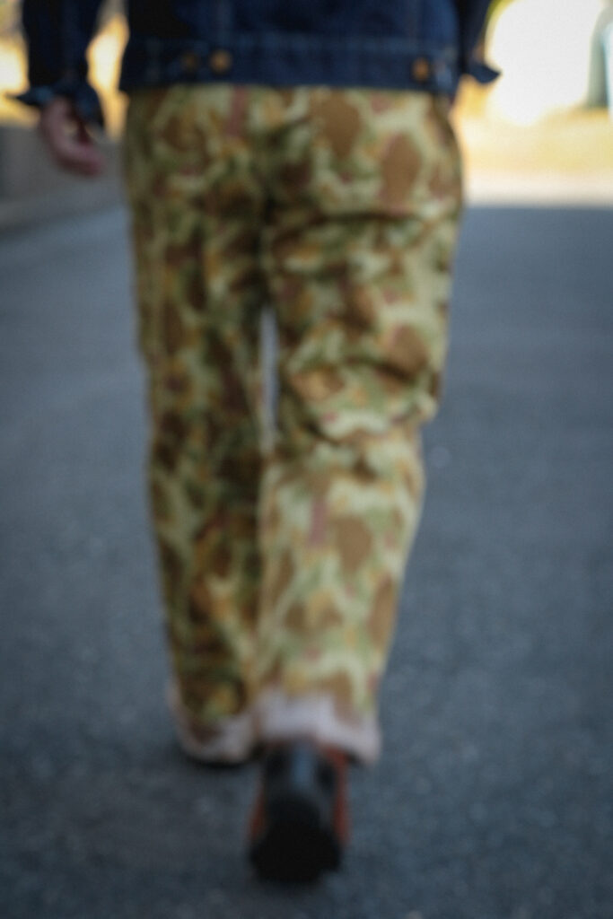 このダックハンターカモを使用した、オリジナルのベイカーパンツ。