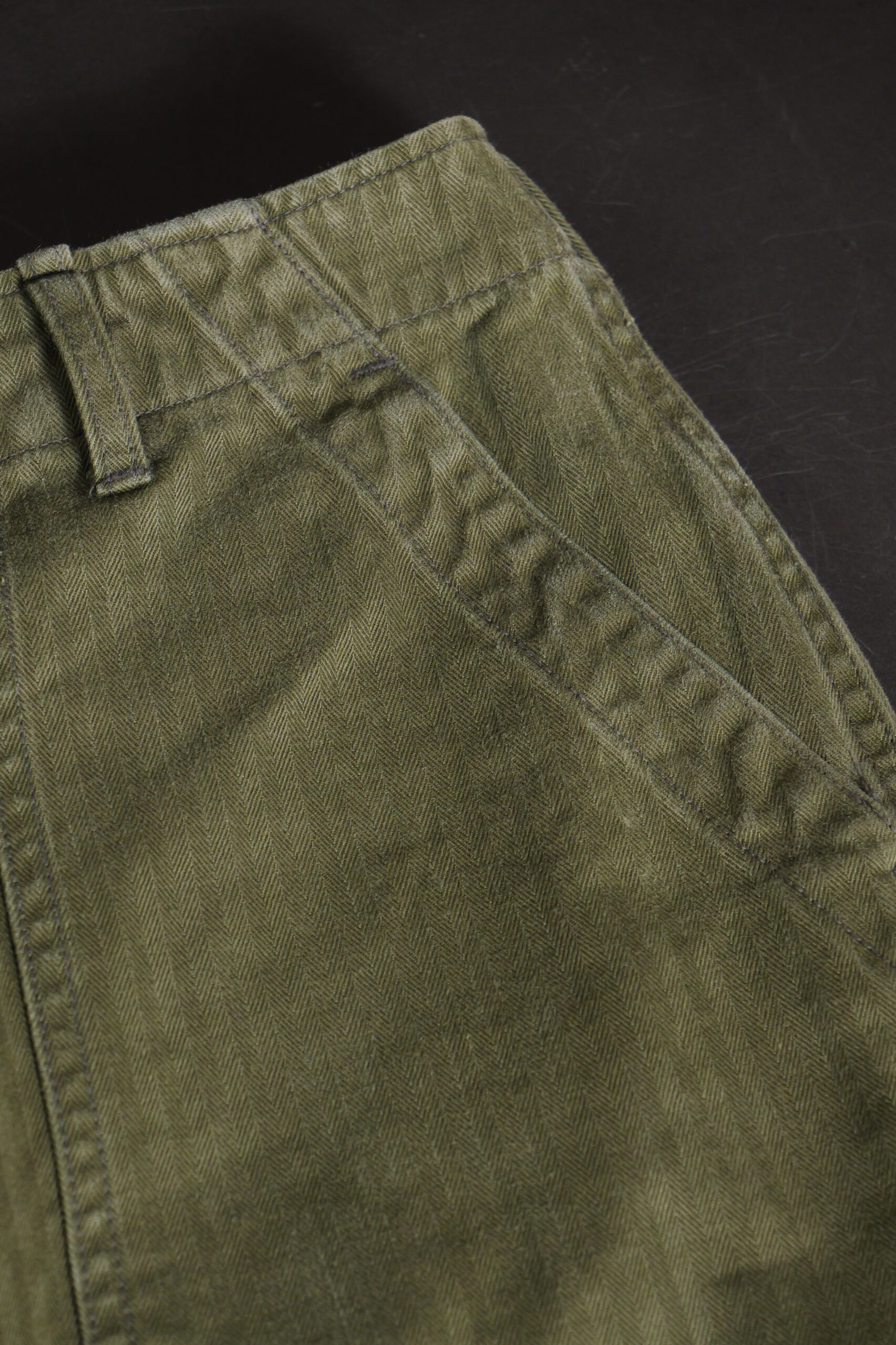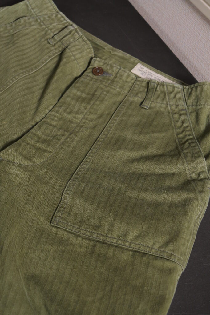 最初期のベイカーパンツに見られるヘリンボーンの生地。