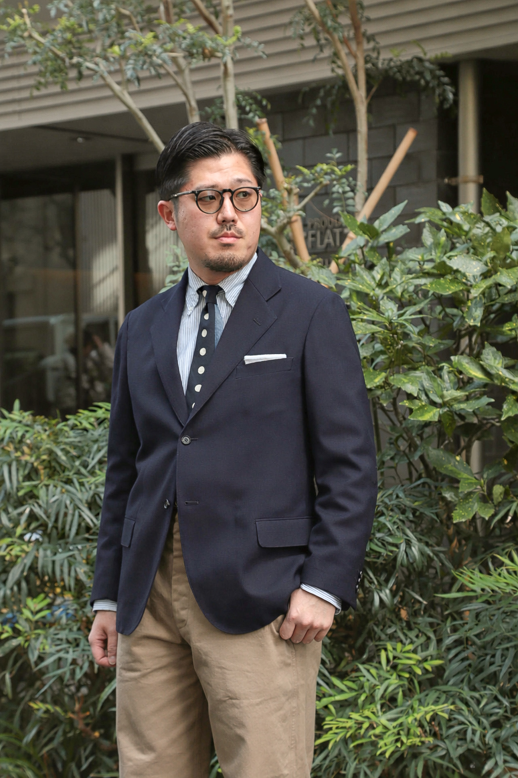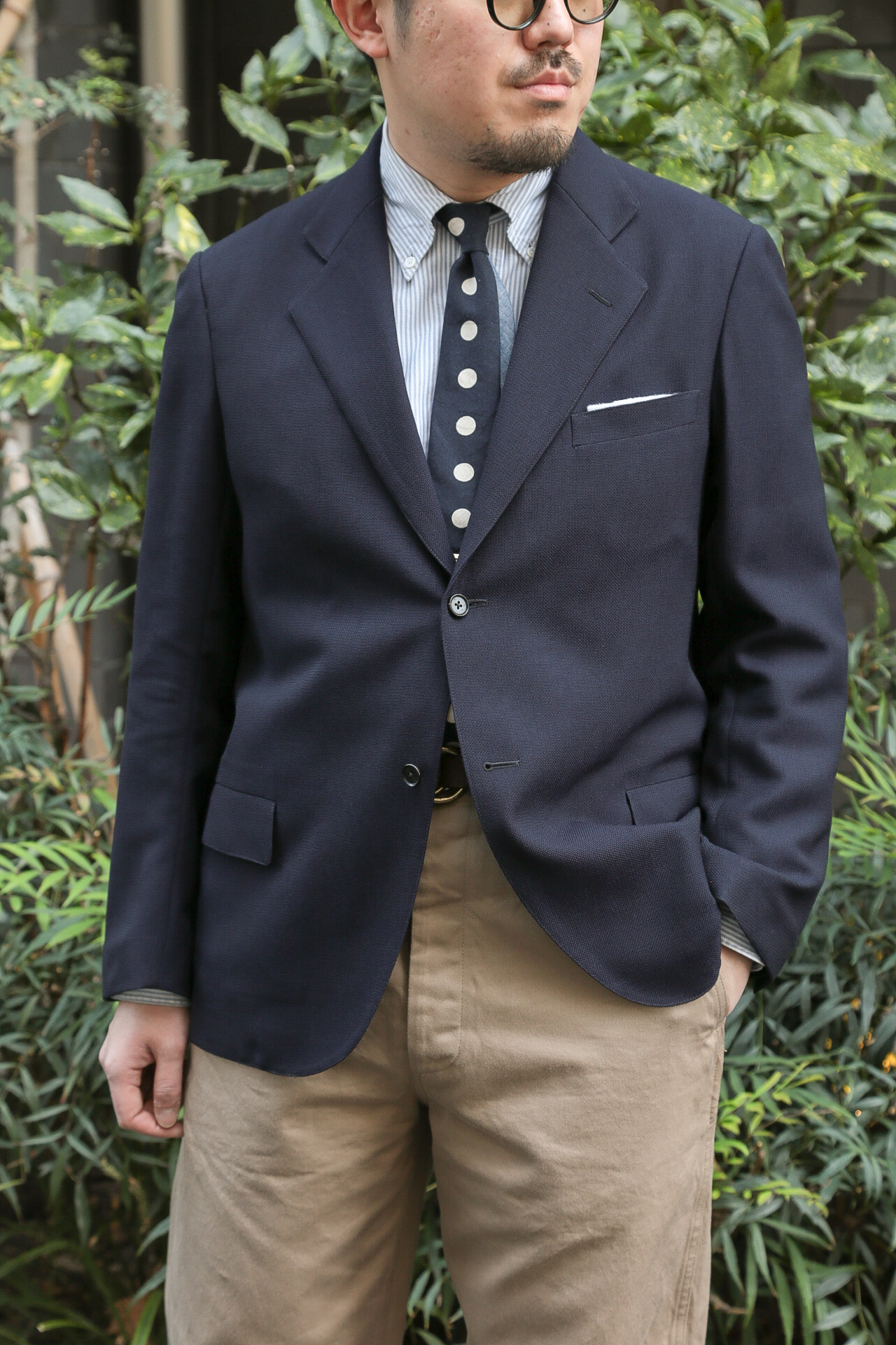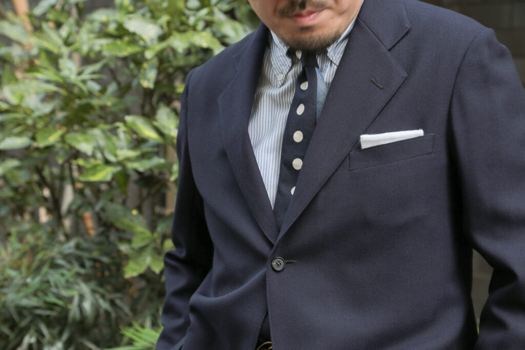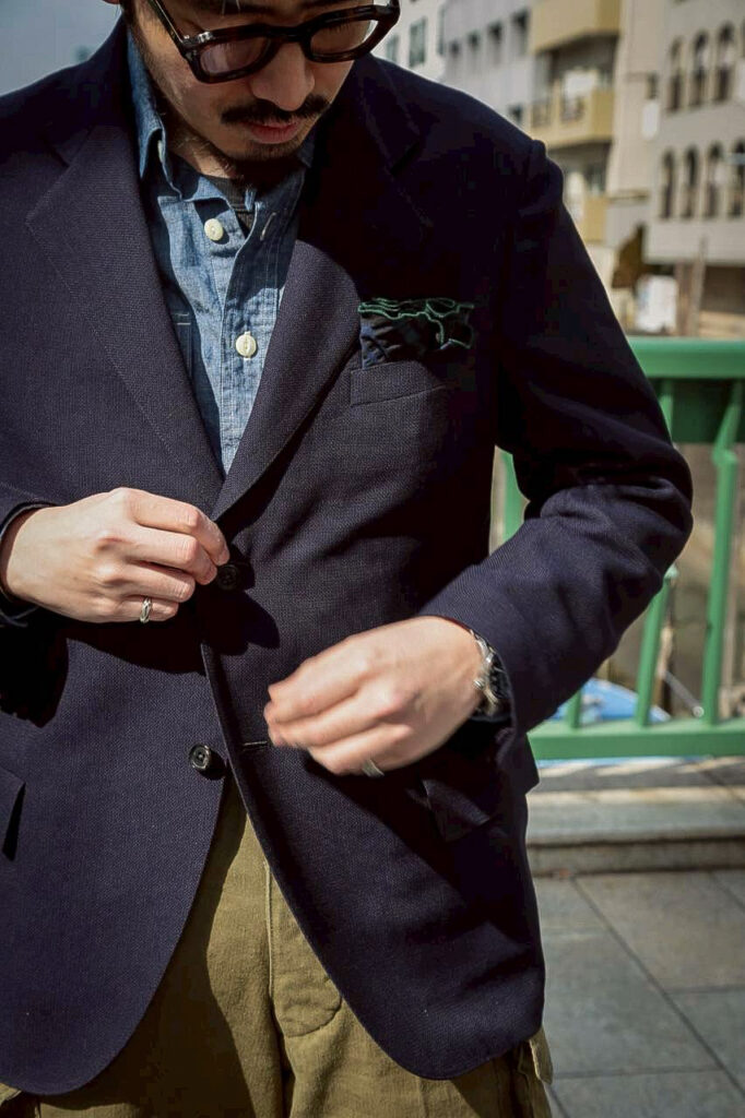 ネイビーのスポーツコートは、僕たちとしてもそのような位置付けの洋服ですし、
