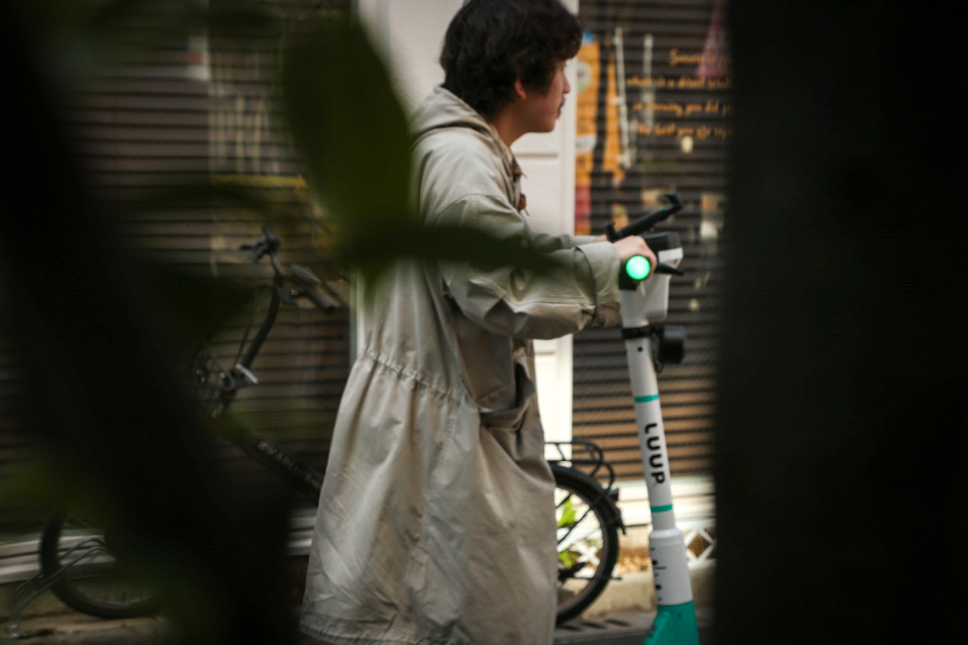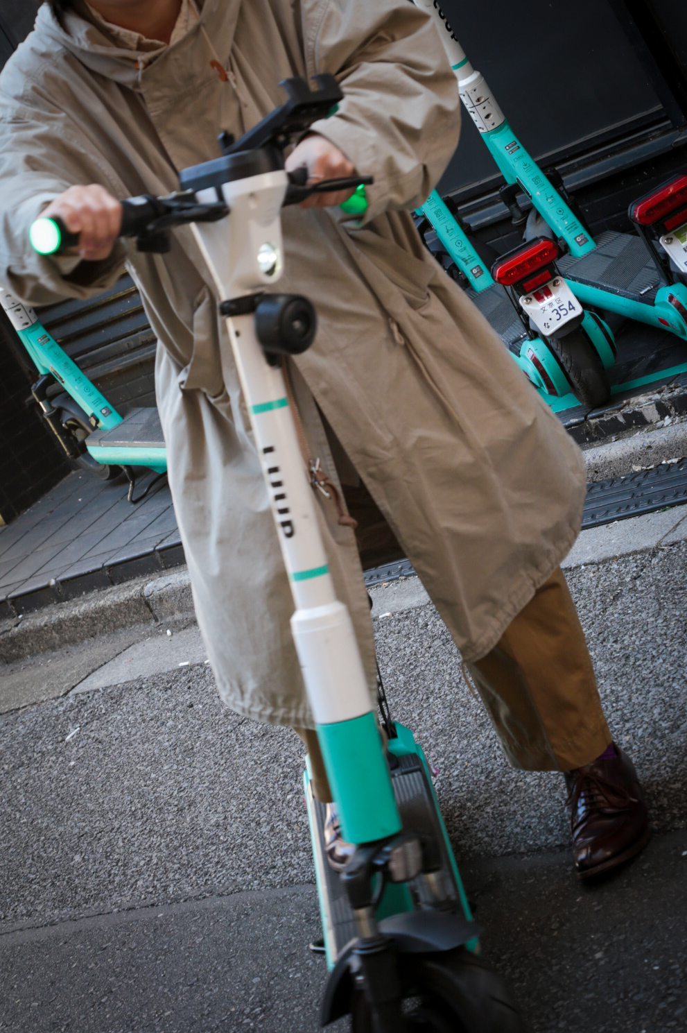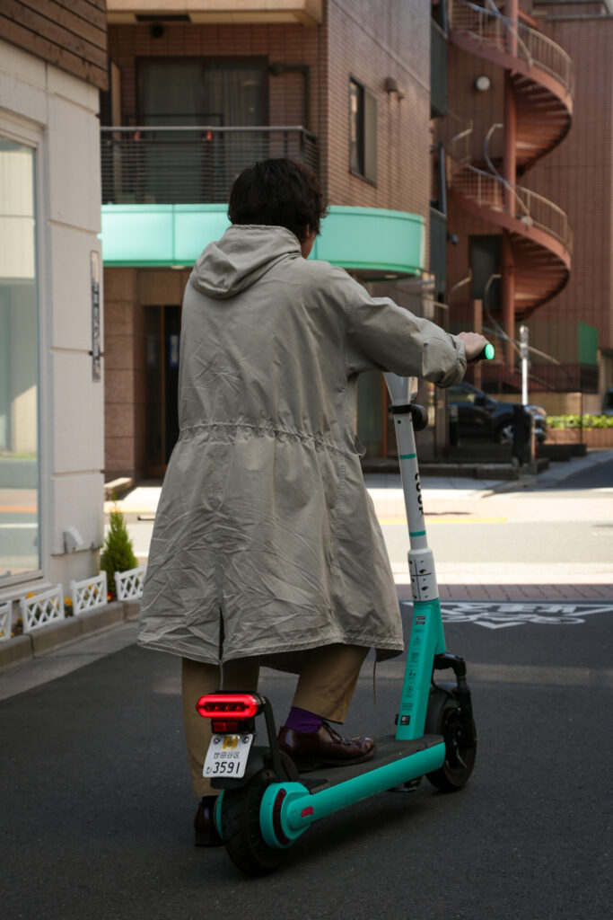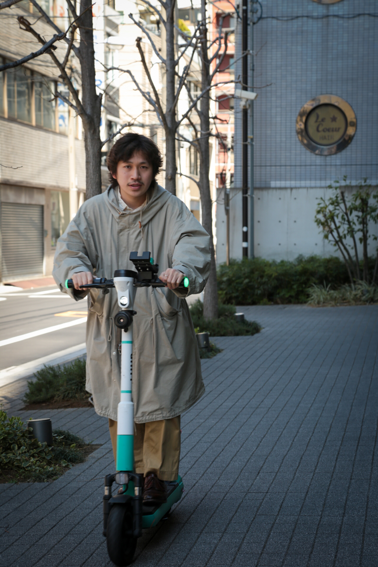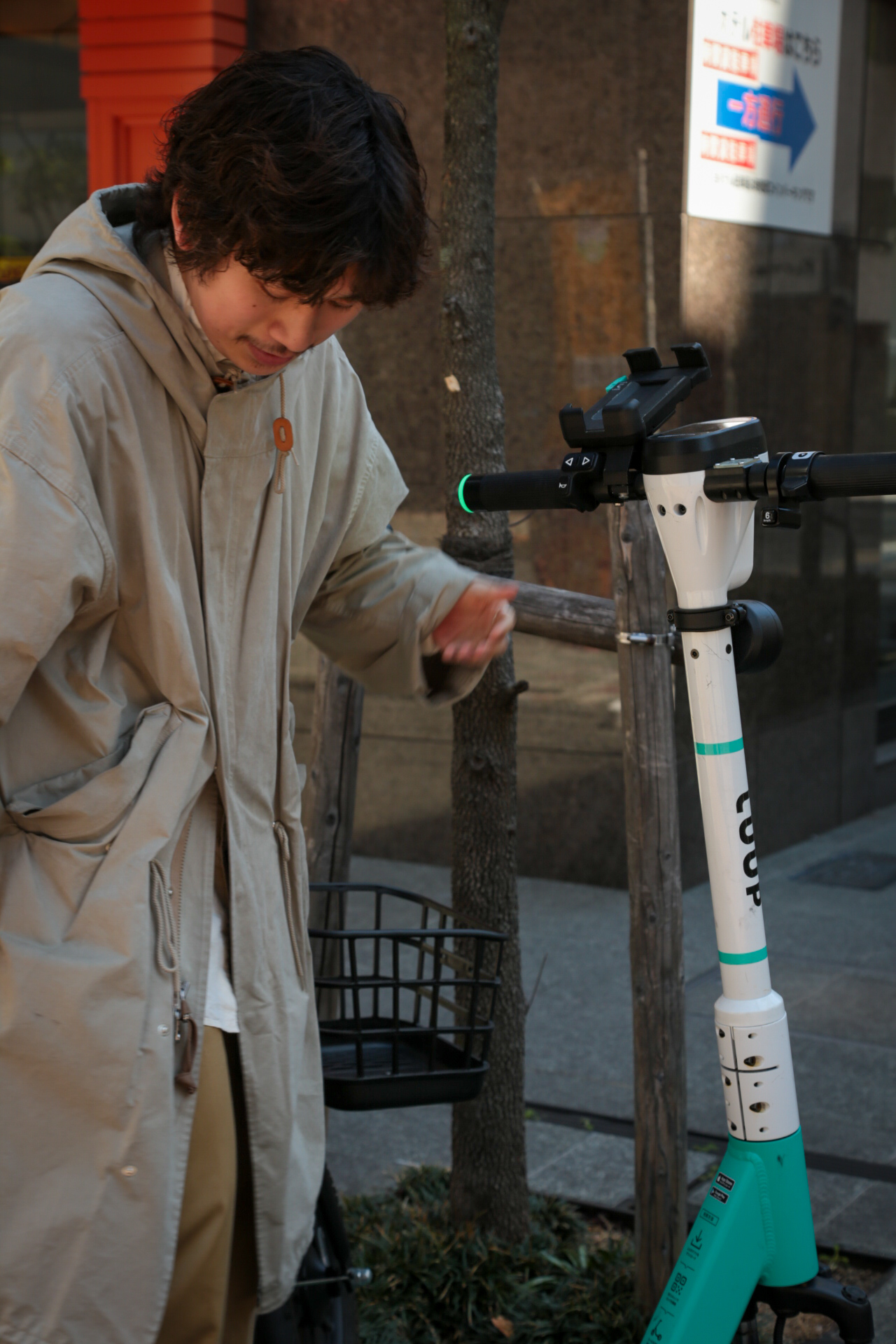 「電動自転車のタイプと、スクーターのタイプと2種類ありますが、僕はスクータータイプを使います。」