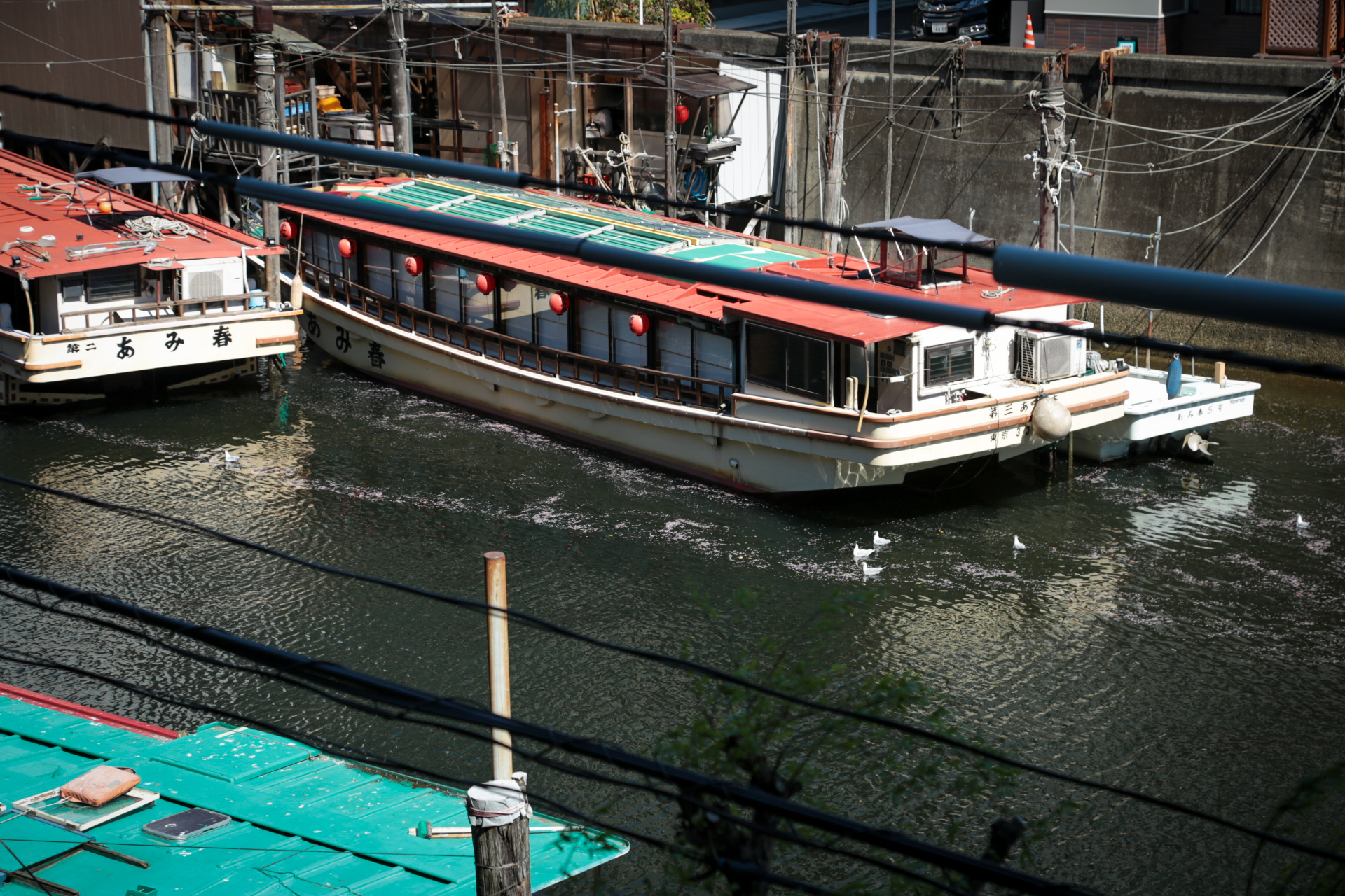 窓の外を覗くと、神田川に桜の花びら。