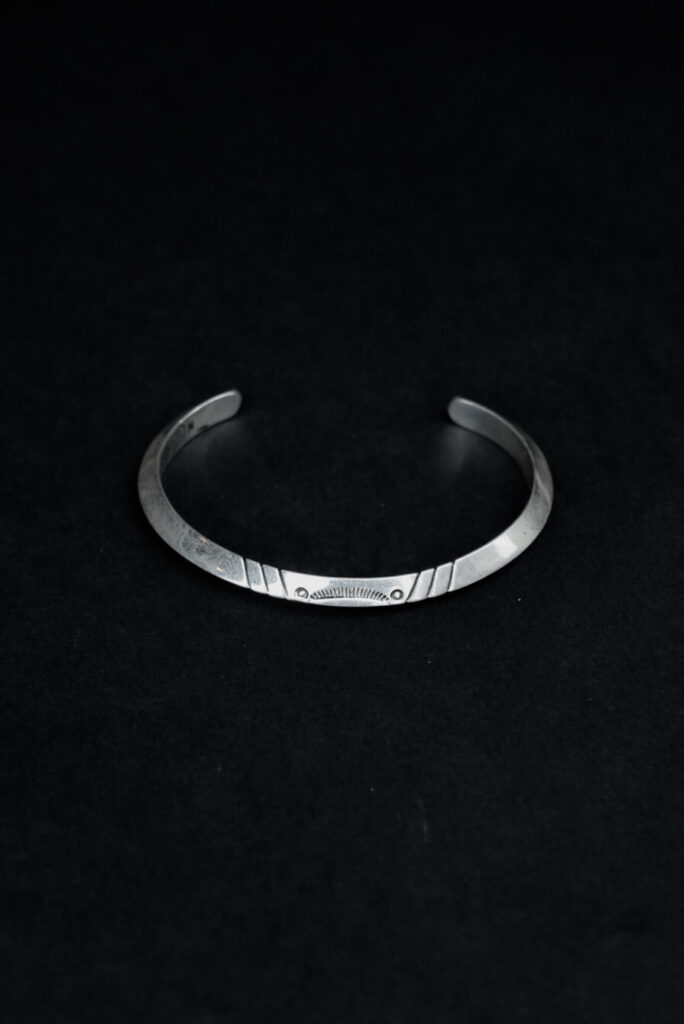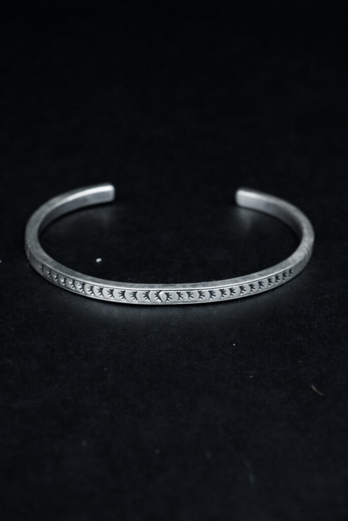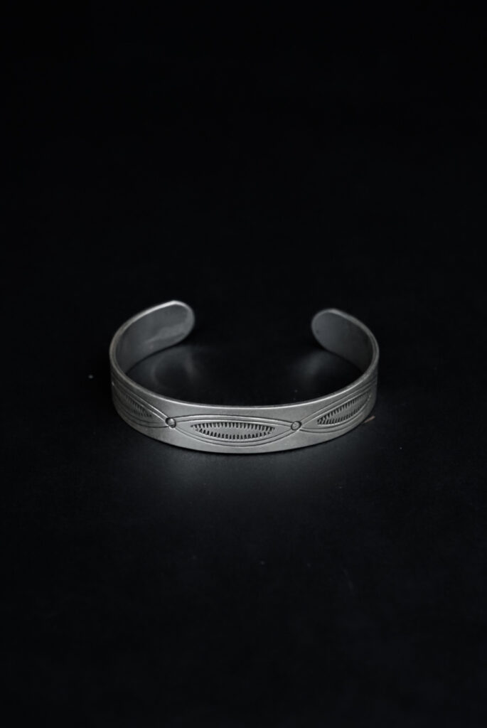 ナバホバングルにもよく見られるオーセンティックなアイテムです。今回はスタンプの柄違いで2型ご用意ができました。一本は持っておきたい間違いないアイテム。