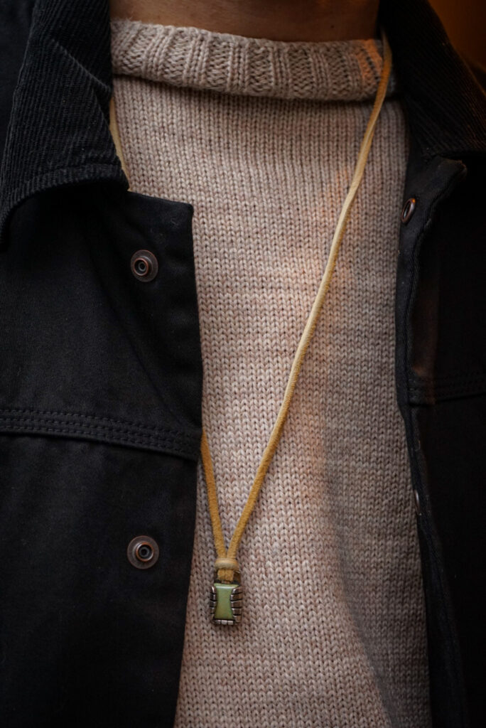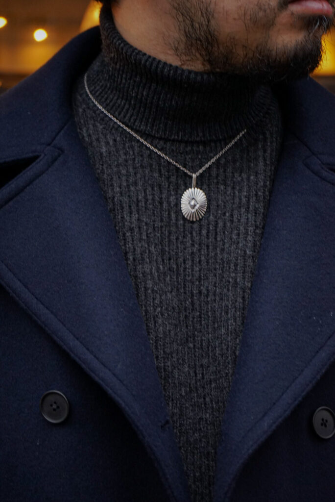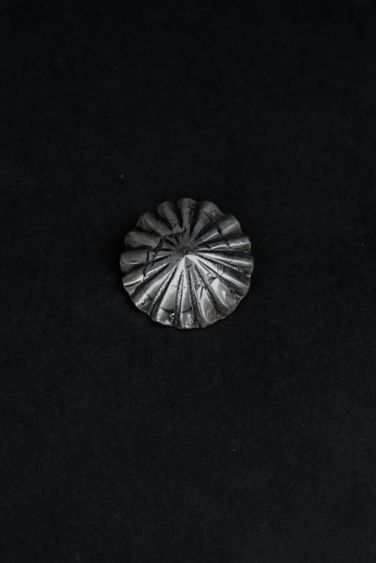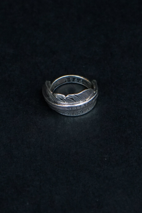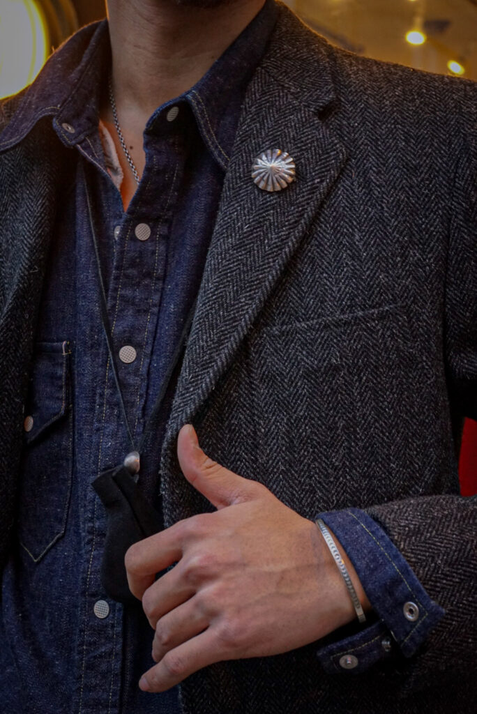 使い込んだうちのコインシルバー特有のコントラスト、経年変化が楽しみなアイテム。ジャケットやミリタリーアウターなんかに添えて上げるとグッとファッションに昇華してくれます。