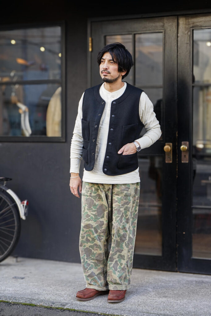 今回の別注ビーチベストはヴィンテージにも引けを取らない一品、自分がファーストオーナーとなって着用を繰り返し経年変化させていく。
