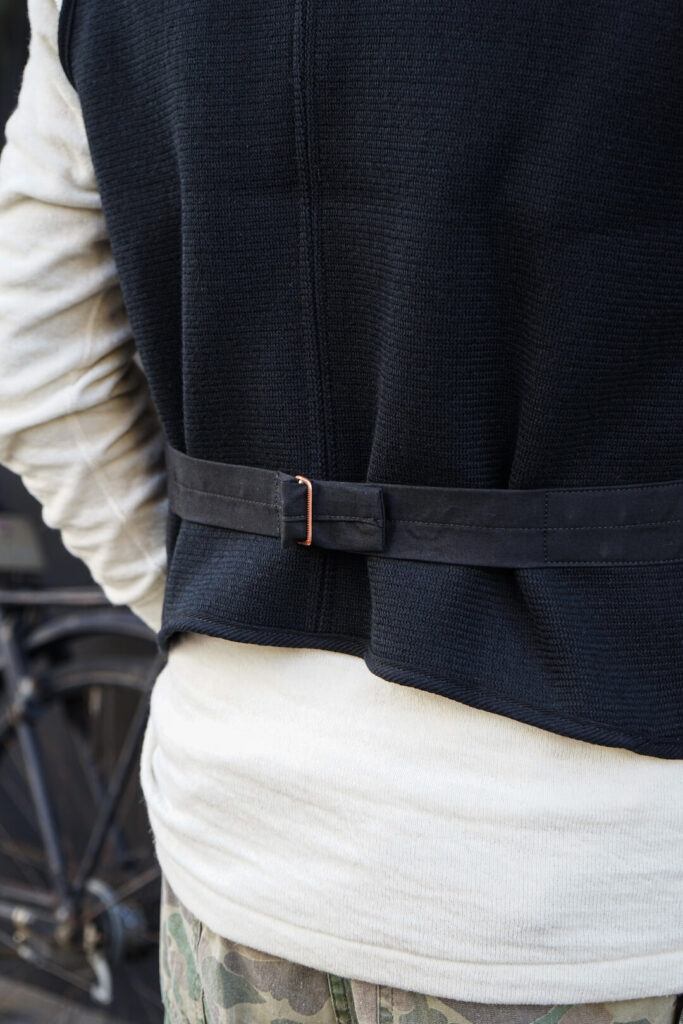 バックスタイルにはボンクラオリジナルバックルバックが採用されており、たっぷりとある身幅をお好みのフォルムに調整することができます。針では無い仕様のバックルになっているので、上着や車のシート等も傷が付かなく安心して着用して頂けます。