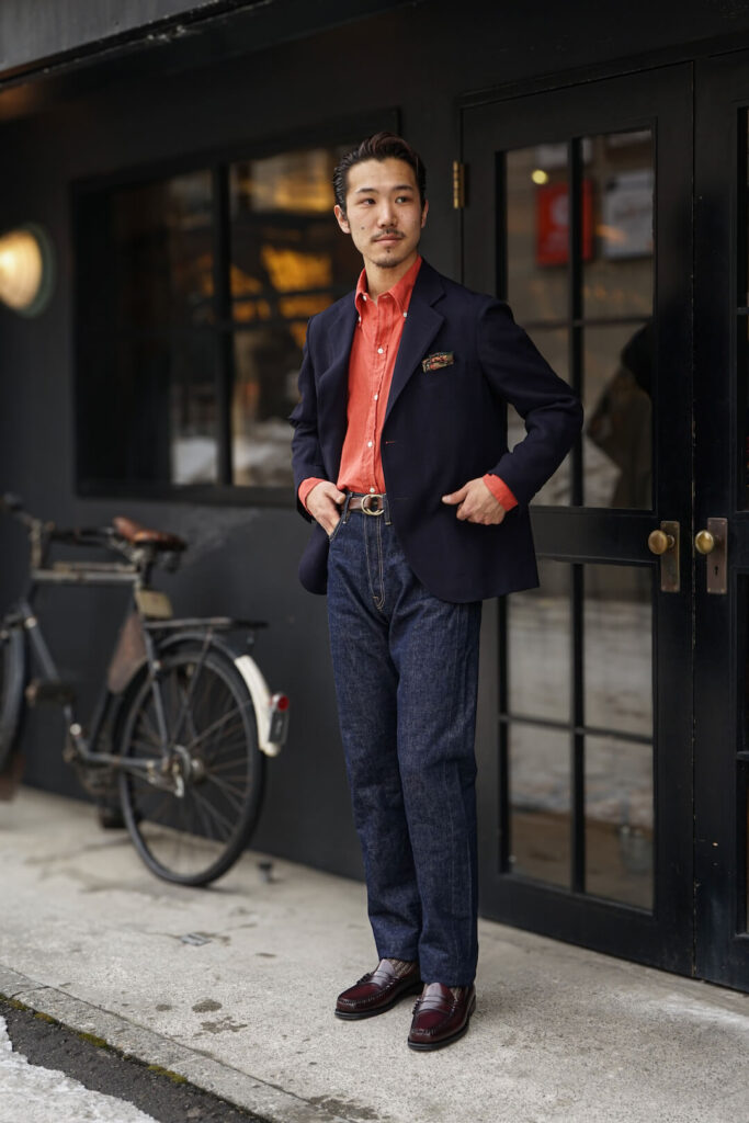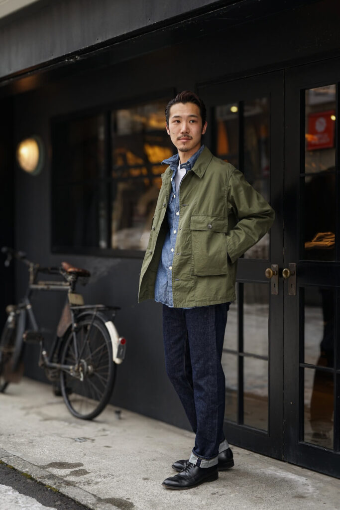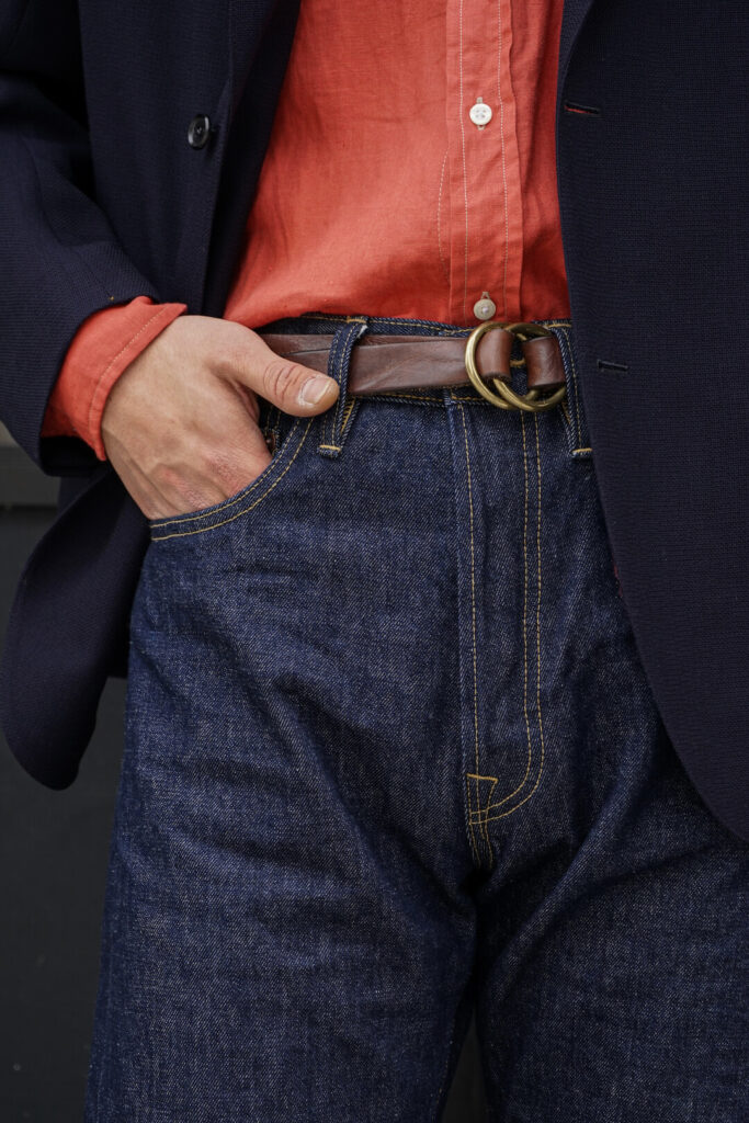 トラディショナルなスポーツコートやミリタリージャケット等、多種多様に使えるこの一本は間違いなく押さえておくべきアイテムだと思います。非常にベーシックなアイテムで”デニム”と言う物をお持ちの方は沢山いらっしゃると思いますが、こう言った背景のあるアイテムは、是非持っておいて頂きたいです。