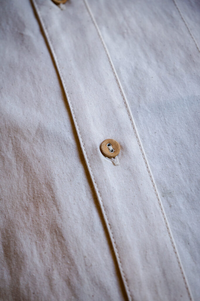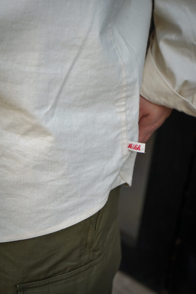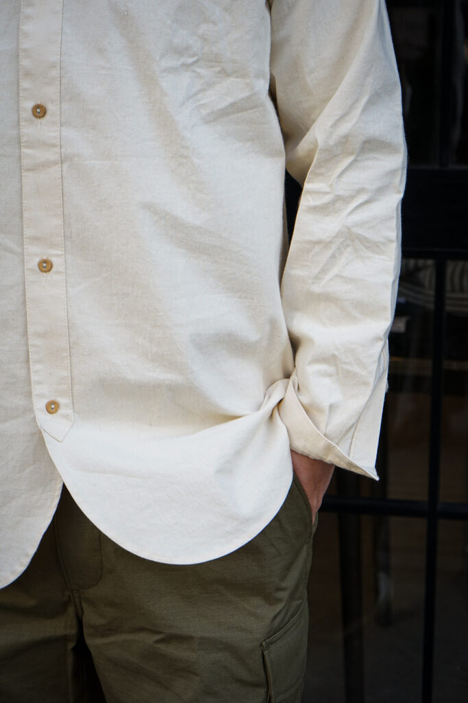 素材はコットン100%でしっかりとしたオンスの生地感ながら、しっとりとした質感で数年かけてエイジングさせて頂きたい一枚。
